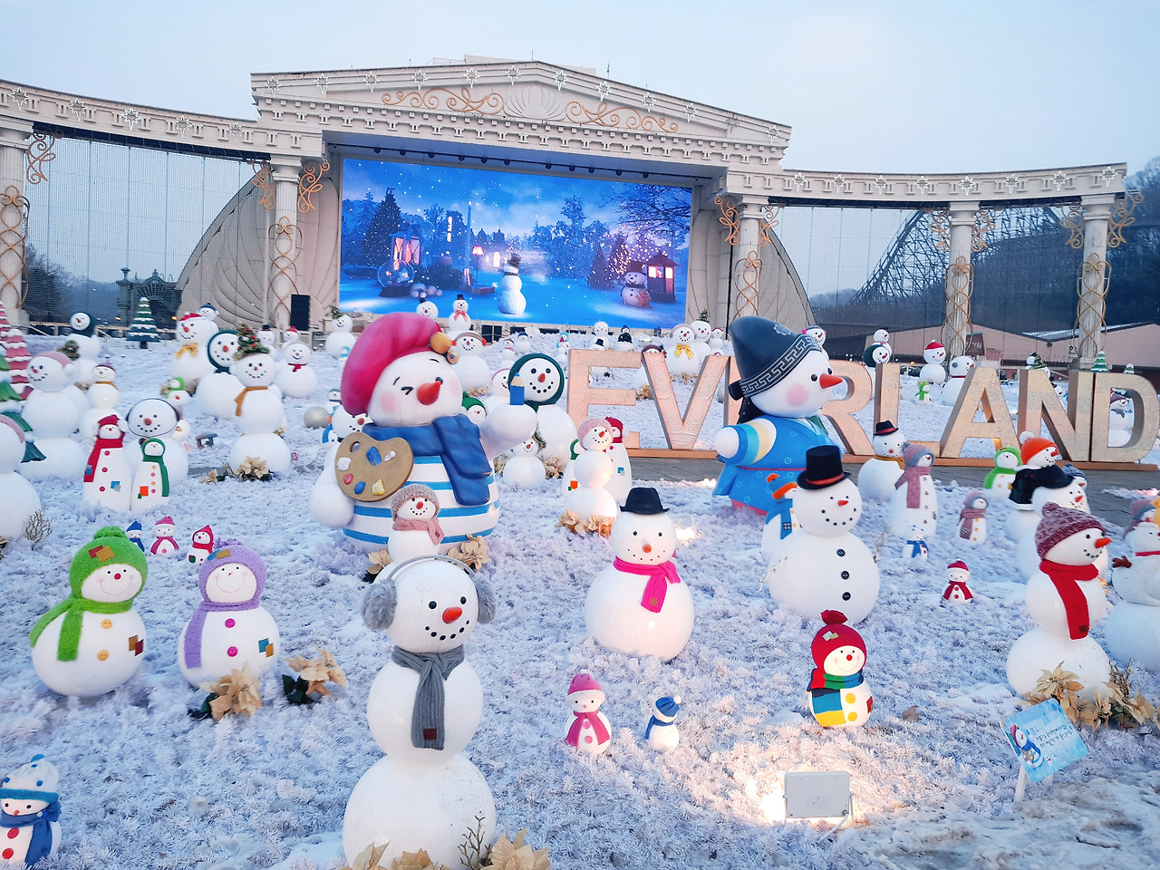 이제 더 이상 설렐 것이 없는 나이라고 생각했는데 아이 덕분에 오랜만에 찾은 에버랜드에서 난데없이 마음이 두근거리기 시작했다. 계절마다 다른 옷을 갈아입는 에버랜드의 겨울 콘셉트는 눈이다. 온 세상이 겨울왕국처럼 눈사람으로 둘러싸여 마치 눈세상의 공주라도 된 것처럼 심드렁했던 나의 마음을흔들어놓았다.