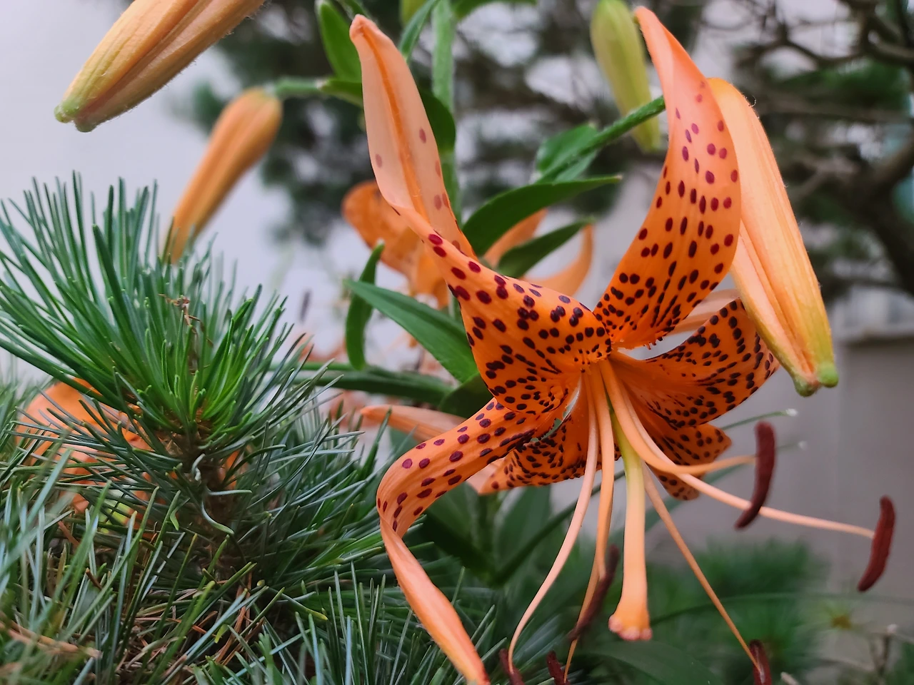 활짝 펼친 주홍빛 날개로