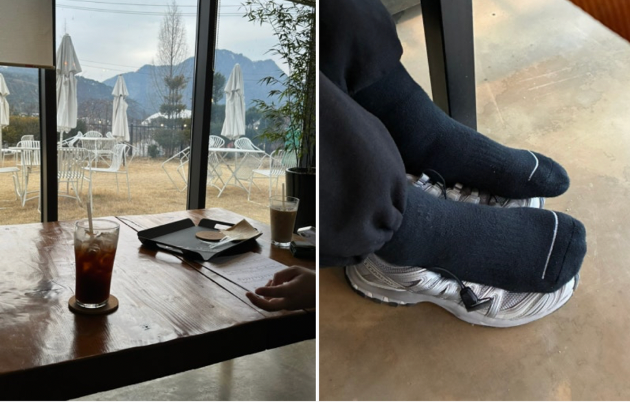 돌아오는 길에 결국 카페에 들어가버렸다. 식당에 이어 친구는 이번에도 신발을 벗고 쉬었다. 발 안쪽, 아킬레스건까지 아픔이 옮았다. 족저근막염 원인을 찾다가 ‘평소보다 빨리 걷는 것’을 보고 우리는 무릎을 탁 쳤다. 나는 빨리 걷기로 소문났고 내 친구는 날 따라오느라 무리를 한 거다. 전에 나와 22km를 걸은 친구도 족저근막염에 걸렸다는 사실을 깨닫고나니 내가 원인이구나 싶었다..