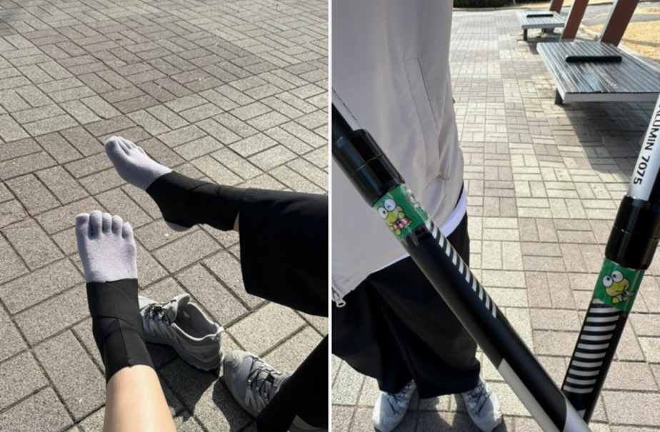 출발지에 도착해서 양말과 발목보호대, 무릎보호대를 착용하고 등산스틱까지 꺼냈다. 본격적으로 트레킹화를 포함한 장비들을 테스트할 시간이다. 햇빛 알러지를 막기 위해 얼굴 전체를 가리는 챙모자를 썼는데 말벌아저씨 같았다. 말벌도 두렵지 않은 비주얼이긴 했다.