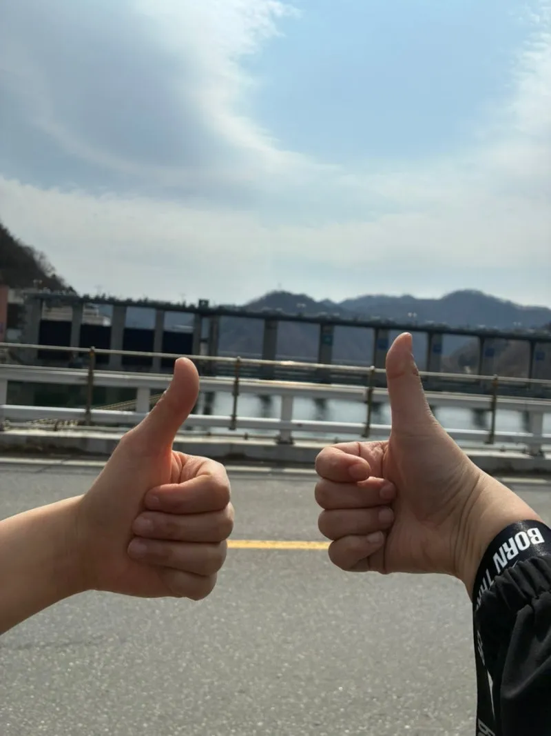 반환점에 거의 도착해서 남긴 엄지척. 반환점 근처에 있는 피자집에서 점심을 먹기로 했다. 10km를 걷는 동안 나는 아무렇지도 않았다. 새끼발가락이 약간 끼게 되었다는 느낌 뿐… 그런데 친구가 청천벽력같은 말을 했다. ‘발바닥이 뜨거워요.’ 어디서 많이 듣던 표현이었다는 걸 깨닫자마자 욕을 뱉었다.. 족저근막염에 걸렸던 친구가 하던 말이었다. 아니… 전지훈련에 벌써 족저근막염요?