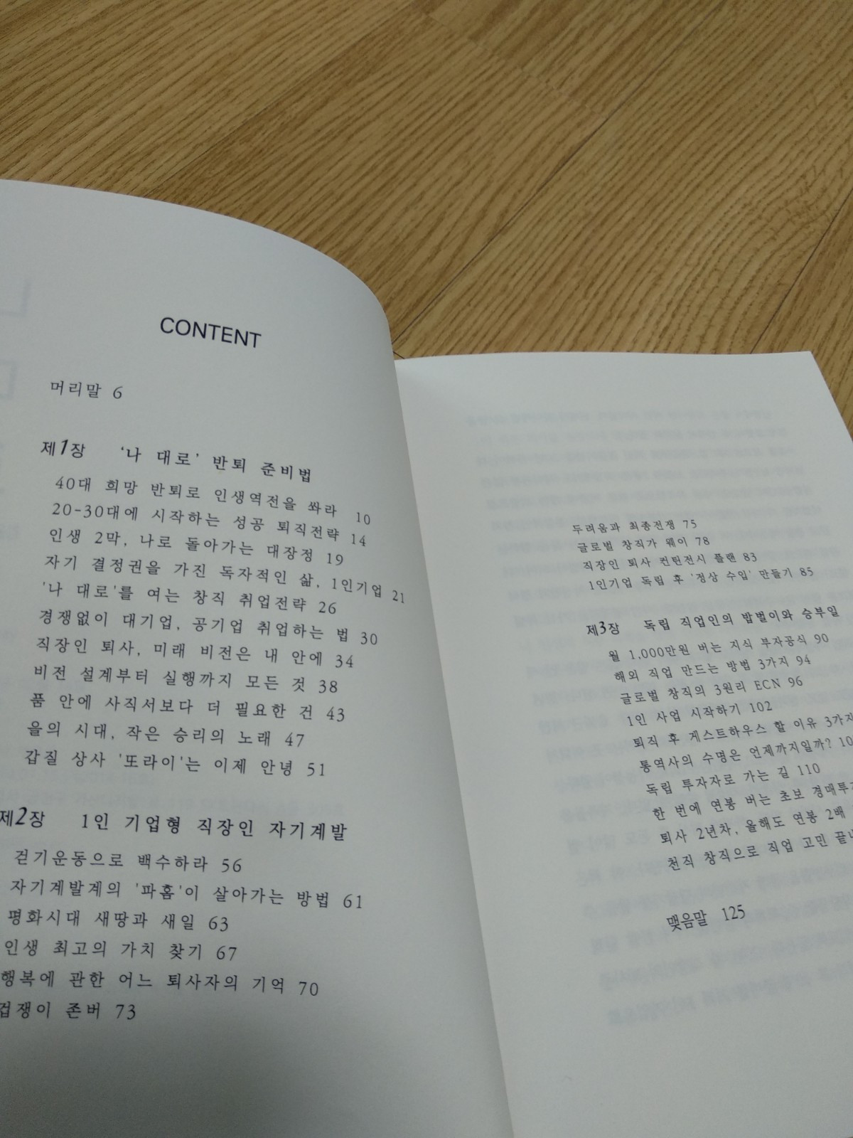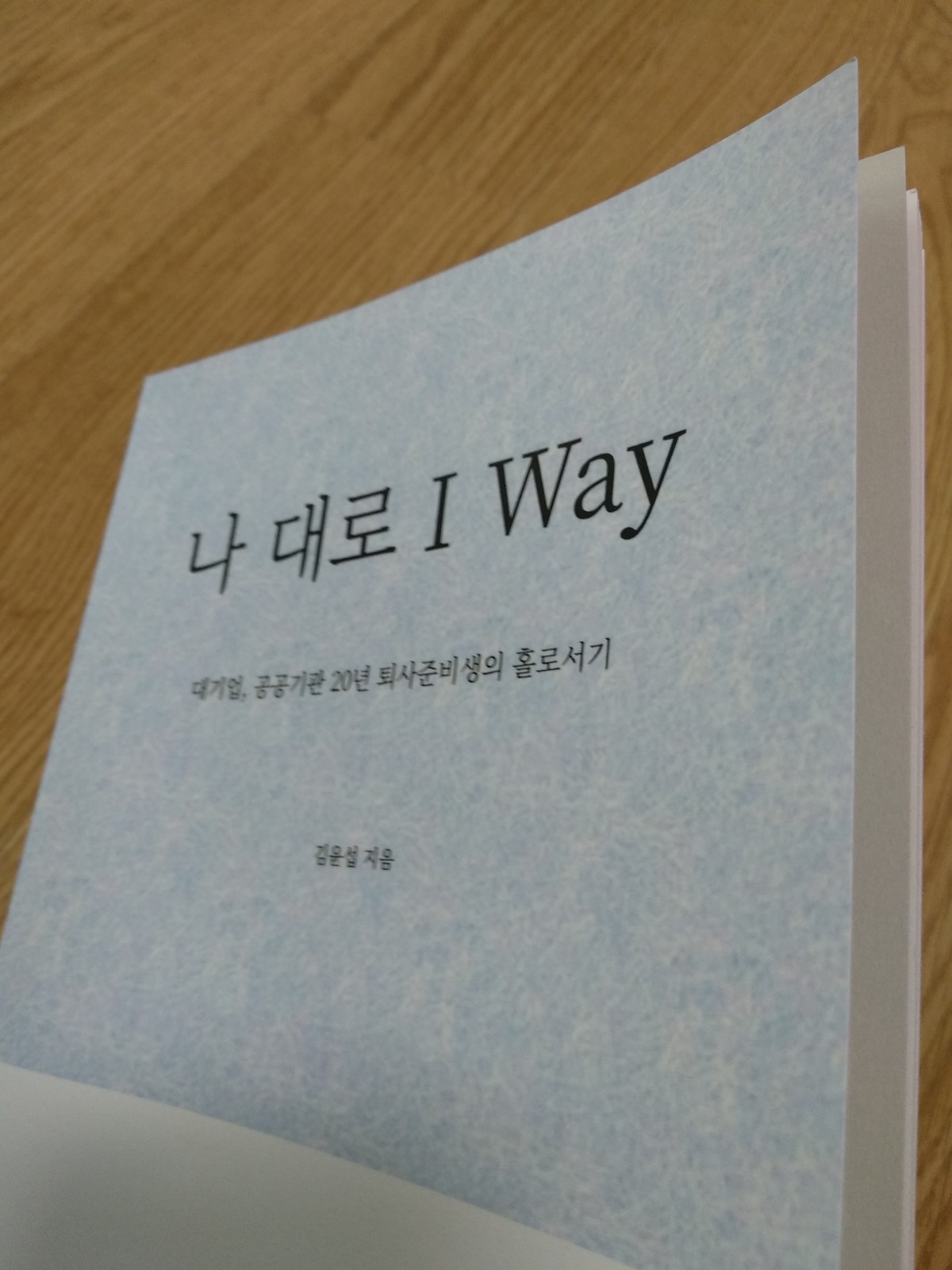 퇴사 후 책 1권 내는 것이 최우선 목표였다. 지식과 경험을 정보 상품으로 만들어 팔기 위해서였다. 책 원고는 어렵지 않게 A4 100여 장을 완성할 수 있었다. 퇴사 후 에피소드, 직장인 퇴직 준비부터 경력 전환, 자기 일 찾기 등의 주제를 엮은 것이다. 하지만 문제는 책을 내줄 출판사를 구하는 일이었다. 몇 번의 출판 거절 끝에 지금은 원고를 다시 수정하고 있다. 대신 시범적으로 우선 자가 출판을 했다. 출판사가 안 내 주니 나라도 책을 낸 것이다. 독립 직업인의 정신이다. 이렇게, 그토록 말했던 "누구나 책을 쓸 수 있다"는 구호를 실천했다.