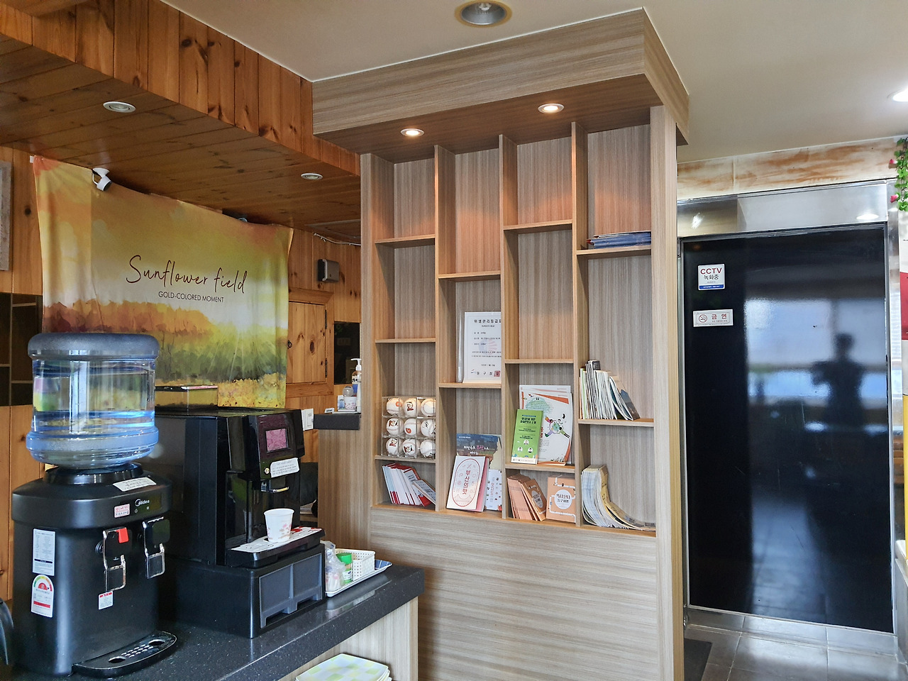 사실 이 공간은 제 용도를 찾지 못하고 방치 되다시피한 서가였다. 입구 근처지만 약간의 지역 관광 홍보물 정도만 덩그러니 놓였을 뿐이다. 그나마도 여기저기 공간이 숭숭 비어 늘 채울 거리가 고민이었다. 이곳 외에도 숙소 내 더 큰 책장이 있는 별도 독서공간이 있었다. 책 읽기를 좋아하는 주인장의 취향이 반영된 덕분이었다. 하지만 독서공간은 운영 초기에 만든 후 별로 활성화되지 못 했다. 숙소의 끝자리, 별실 안에 있어 접근성이 떨어졌기 때문이다. 별실 전용 공간에 더 가까웠다. 입구쪽 빈 서가 각 코너에 이름을 붙이고, 사업 현수막까지 만들어 달자 금세 분위기가 달라졌다. 기존 독서공간에서 책도 몇 권 선별해 가져왔다. 아직 채울 것 투성이지만 시작이 반이라 하지 않았나. '작가 게스트하우스'를 향한 본격적인 여정이 다시 시작되었다.