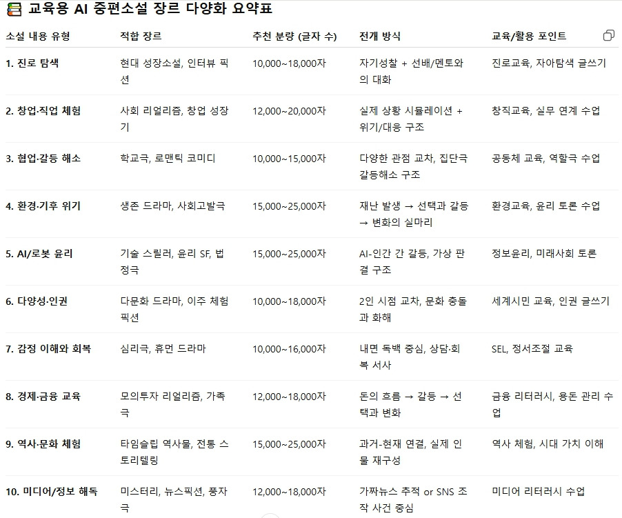 AI에게 소설 내용별 적합한 장르, 분량 등도 추천받았으니 참고해 보자.
