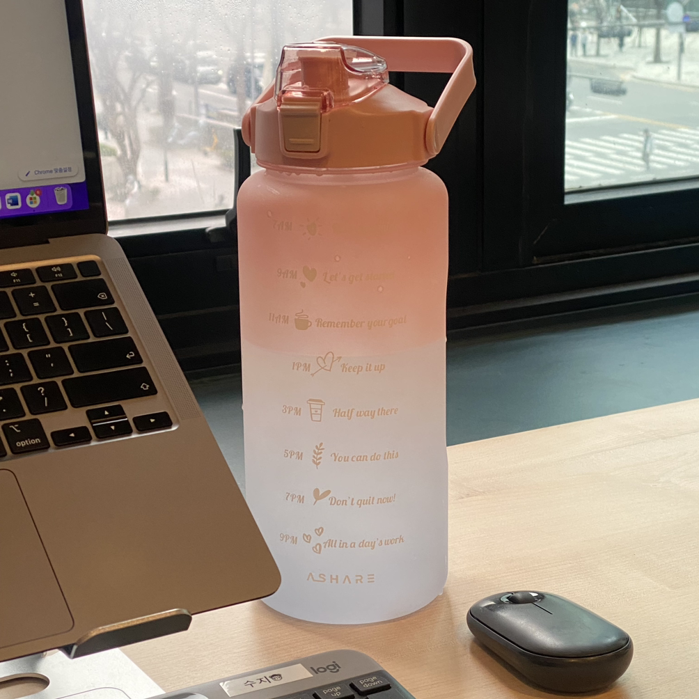 물을 너무 많이 마시면 신장 기능이 악화될 수 있지만, 2리터 정도는 성인 하루 권장량과 엇비슷하기도 하고요. 물을 자주 마실 때와 아닐 때 피부 차이를 몸소 느끼기도 해서 커피를 제외하고 2리터 마시기를 하기로 마음먹었는데요. 생각보다 잘 되진 않아요. 그냥 저는 그 2리터 물병이 사고 싶었던 거죠. 예쁘니까요. 제 물병을 실물로 보고 궁금하신 분들이 있다면 꼭 후기를 물어봐주세요. (링크는 아래에 첨부합니다)