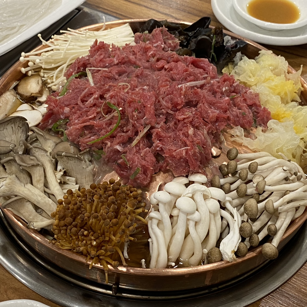 두 번째 식당은 샐러드나 포케가 지겨운 다이어터들을 위한 곳입니다. 성수에 '버섯집'. 동료의 추천으로 성수 방문했을 때 갔던 곳인데요. 뚝섬역에서 서울숲역 가는 방향 길목에 보이는 외관부터 아주 정갈한 집입니다. 양식이 넘치는 뚝섬역에서 탄수화물 안 먹고도 (밥은 안 먹으면 됨) 건강하게 먹을 수 있는 식당으로 추천합니다. 국물이 깔끔해서 여기도 재방문 의사 200%이고요. 저희는 버섯전골을 시켰는데 직장인 점심메뉴로 '탕'도 좋겠어요.