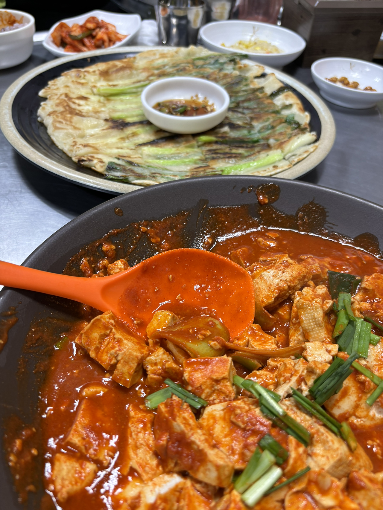 이 날은 정상에서 먹은 컵라면과 김밥, 돌아오던 길의 저녁 메뉴까지 이상하리만치 완벽했습니다. 대전의 도심에서 '두부 두루치기'라는 음식을 먹었는데 난생처음 보는 음식과 울리는 배꼽시계 앞에 다들 혼이 나간 듯 밥 한 공기를 뚝딱 비웠습니다.
