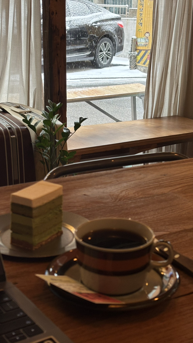 1월에도 많은 커피를 마셨습니다만 이번 달 처음으로 추천하고 싶은 커피는 서울대입구역에 있는 '고로커피 로스터스'의 '에티오피아' 브루잉입니다. 이전에 친구 집들이로 근처에서 가장 가까운 카페에 디저트 픽업 차 들린 적이 있었는데 나중에 커잘알 친구의 추천으로 재방문했습니다. '에티오피아 우라가 고구구'라는 신기한 이름의 커피를 주문했고요. 오후 3시에 산미 있는 커피 한잔을 마시는 걸 좋아하는 저로서는 글을 쓰면서 한 잔 하기에 딱 좋았습니다. 적당히 셔요. 눈 오는 날의 고즈넉한 분위기와 따뜻한 감성을 자아내는 BGM 은 덤입니다. (페어링 한 디저트 녹차절미는 제 입맛에는 많이 달았는데 시즌 메뉴라서 드셔보시는 것도 나쁘진 않을 듯합니다.)