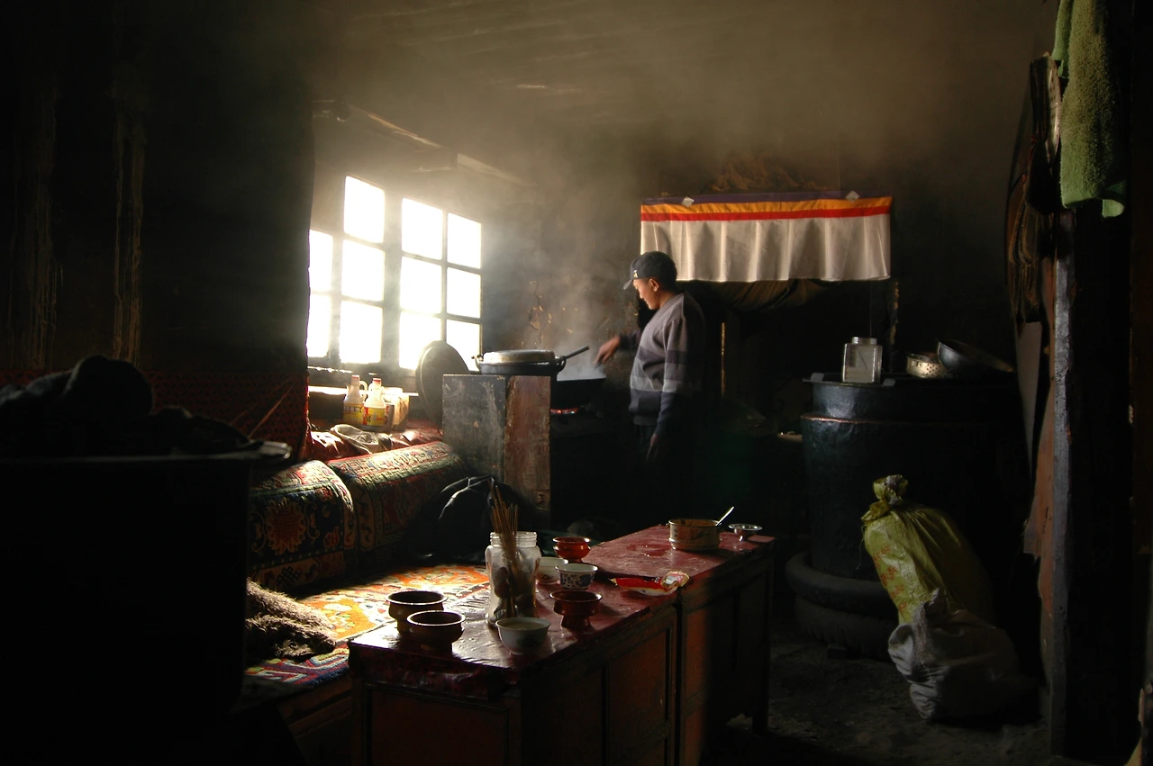 날이 서서히 밝아 오는 동안 몇 시간이 지나도록 아저씨는 내 잔에 버터티가 줄어들 때마다 말없이 오셔서 계속 버터티를 채워주셨다. 돈도 받지 않으셨다. 이따금 버스 기사님으로 보이는 분들이 옆에서 불을 쬐다가 차를 마시다가 나가고는 했다. 나는 아무 말없이 그저 앉아서 계속 불을 쬐며 차를 마셨다. 사원을 보러 새벽같이 일어나 그곳에 갔지만 결국 그날 간덴사원에는 한 발자국도 들어가질 않았다. 사원에 가야겠다는 생각이 아예 들지 않았다. 그 건물 안에서 계속 버터티를 마시고 따뜻한 불을 쬐면서 오가는 사람들을 말없이 바라보기만 하다가, 오후가 되어서 다시 라싸 시내로 가는 버스에 올랐다. 주인아저씨가 아무런 대가 없이 계속 따라주시던 버터티. 내겐 그 시간들이 그날 쬐던 불처럼 굉장히 따뜻했던 기억으로 남아있다. 그 하얗고 진한 버터티를 10년이 지나 이곳에서 뜻밖에 다시 만나게 된 것이다. 얼마나 반가웠겠는가. 감격스러운 순간이었다.