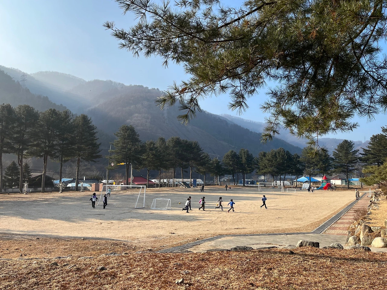 첫째 아이는 집과 가까운 분교에 입학을 하게 되었다. 학생수가 너무 적어서 괜찮을까 싶었지만 걱정은 기우였다. 첫 등교날 하교를 하는 아이는 입학식에서 받은 꽃다발과 점퍼 가방을 나에게 맡기고 아이들과 놀러 운동장으로 뛰어갔다. 활달한 아이는 금세 학교에 적응했다. 방과 후 수업도 다양하고 과목도 알차다. 걱정은 사라졌다. 학교에 대한 비용은 전혀 들지 않는다. 모두 다 무료이다. 아이의 등원 둘째 날 아침, 아이들과 선생님이 운동장을 뛰고 있다. 아이도 신나서 운동장으로 달려간다. 아침 공기가 좋다.