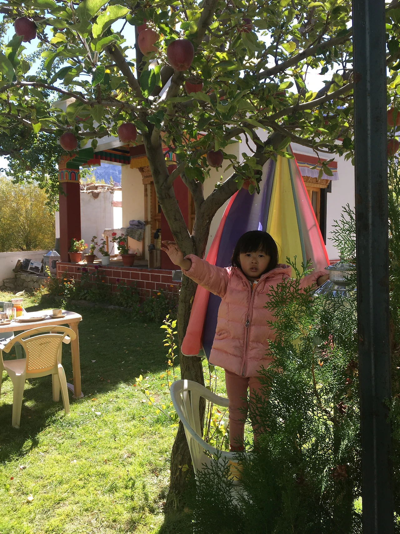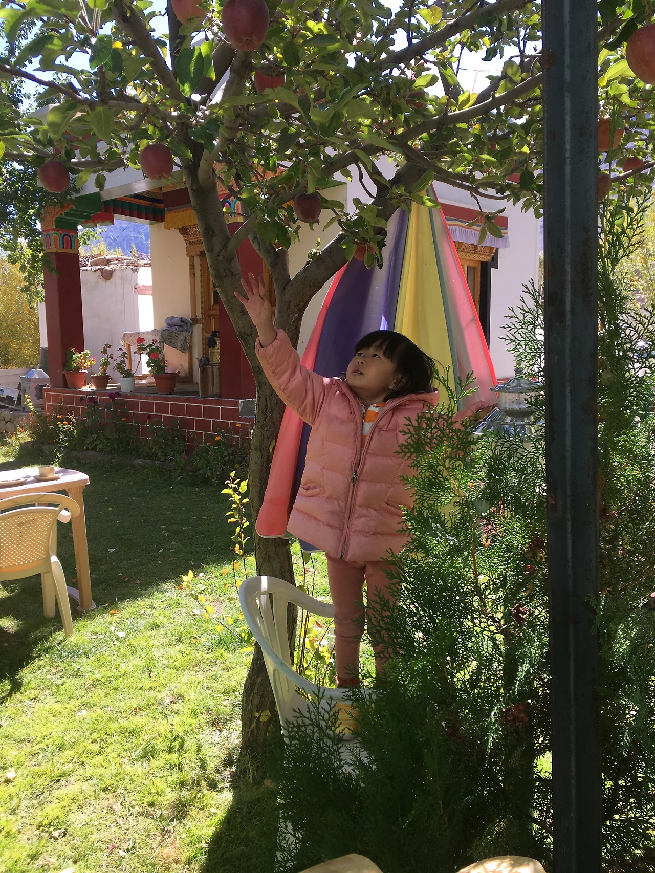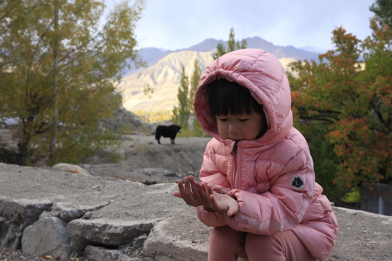 알치의 아침이 밝았다. 시월의 라다크는 언제나 따스한 해가 떠오르면 마법처럼 스르르 추위가 사라진다. 매 순간 태양빛이 얼마나 중요한지 온몸으로 느낄 수 있다. 해가 떠오르는 동안은 그 품에서 따뜻하게 거닐 수 있었다. 정원에 차려진 아침식사를 즐긴다. 라다크 전통 빵에 따뜻한 민트 티 우리 가족만의 식사.
