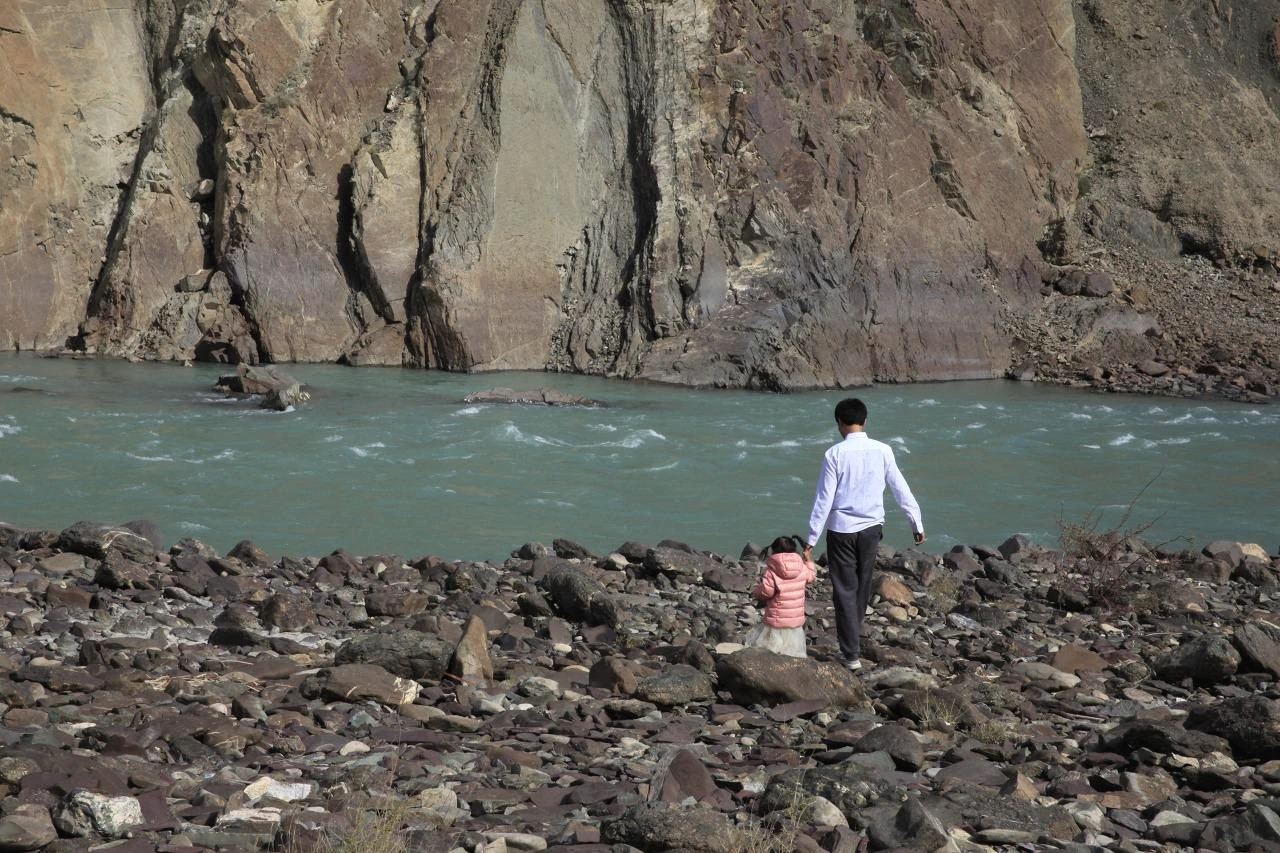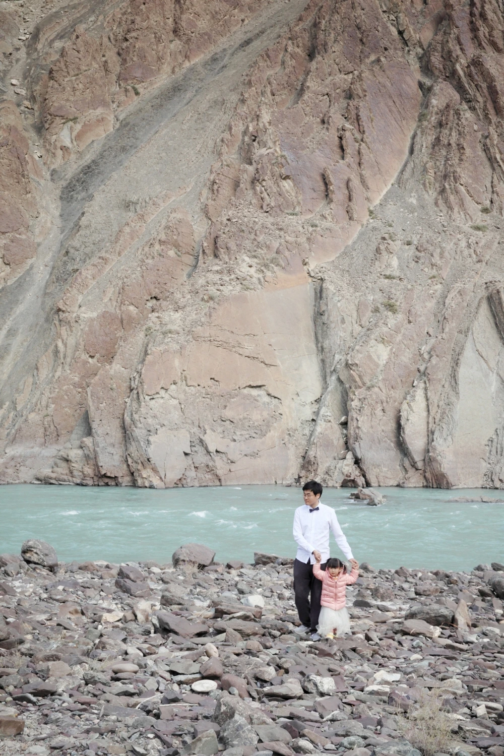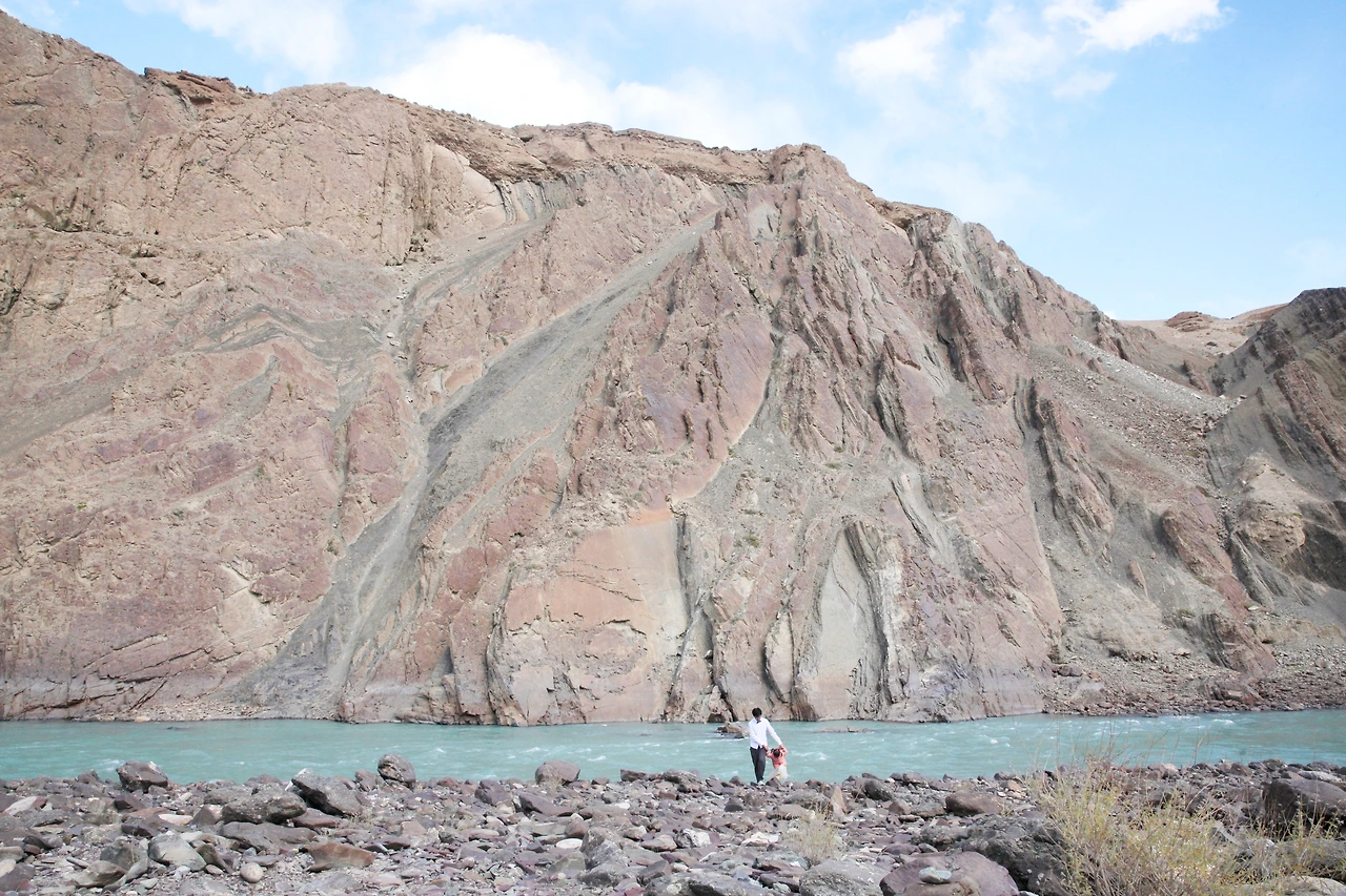 인더스강을 배경으로 찍고자 강 언저리까지 조심조심 내려갔다. 이보다 멋진 부녀 삿이 있을 수가 없다. 너무 맘에 쏙 든다! 그래 역시 자연 배경이 최고다.