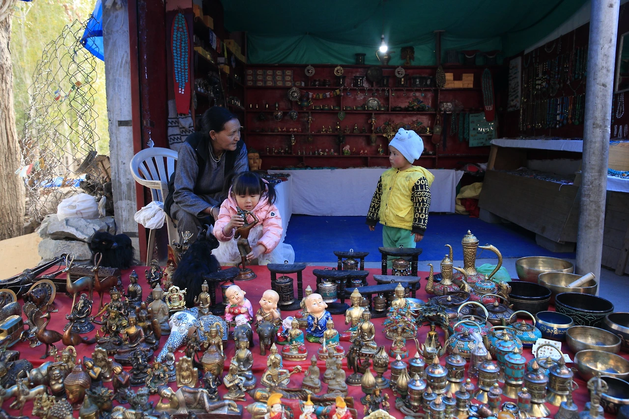 알치곰파를 지나 인더스강까지 봤다면 사실상 알치를 모두 둘러본 셈이다. 알치는 아주 작은 마을이다. 알치곰파 주변엔 법기들과 기념품들을 파는 상점이 많았다. 띵샤와 종 그리고 싱잉 볼들.. 상점을 지날 때마다 이런저런 소리를 찾아들어보았다. 울려서 소리를 내는 법기들은 내 자신과 공명을 하는 소리가 있다고 한다. 알치에서는 맑게 울리는 종을 찾았다. 우리 가족의 몫인 한 개만 구입하기로 한다.