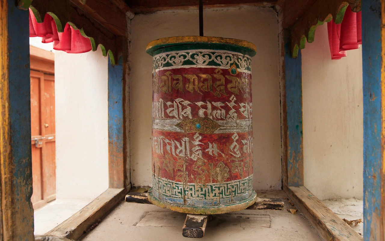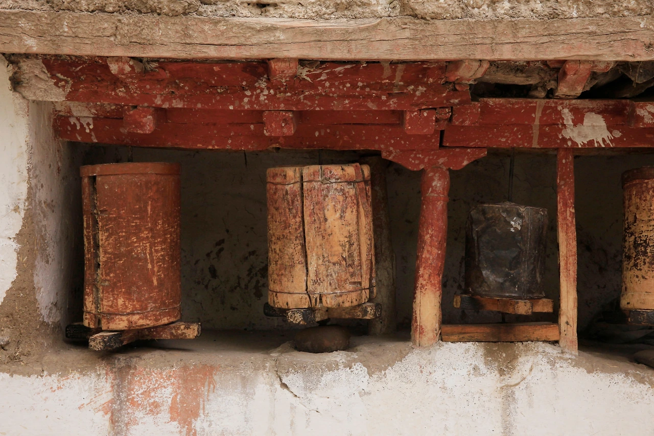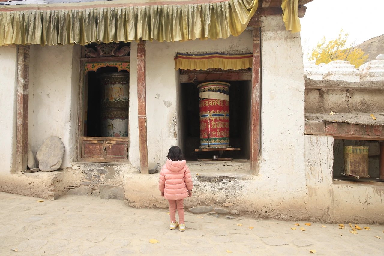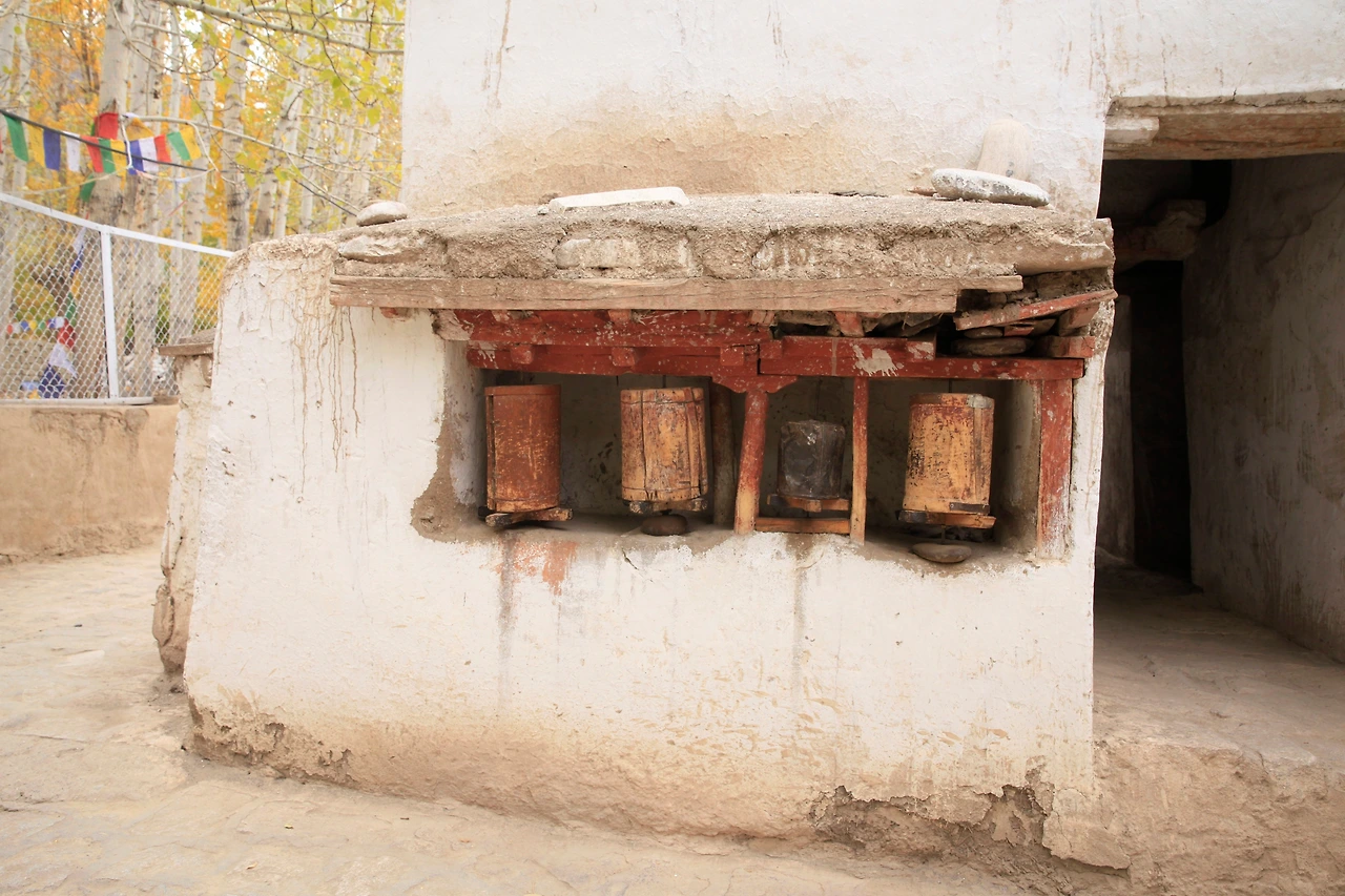 사원의 주변에는 어김없이 마니차가 있었다. 기다란 통 안에는 법문이 적힌 종이가 들어 있다. 사람들이 통을 한번 돌릴 때마다 그 법문을 모두 읽은 효과가 있다고 한다. 사람들은 사원 주위에서 이 마니차를 돌린다. 알치의 마니차는 조금 더 특별했는데 여태껏 많은 티베트 불교사원을 방문해 보았지만, 이렇게 시간성을 가지고 있는 마니차는 처음이었다. 마니차가 옛날에는 이런 모습이었겠구나. 옛 모습 그대로를 보존하고 있었다.