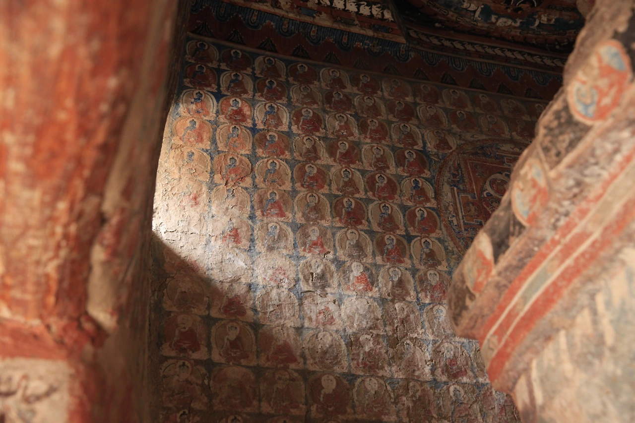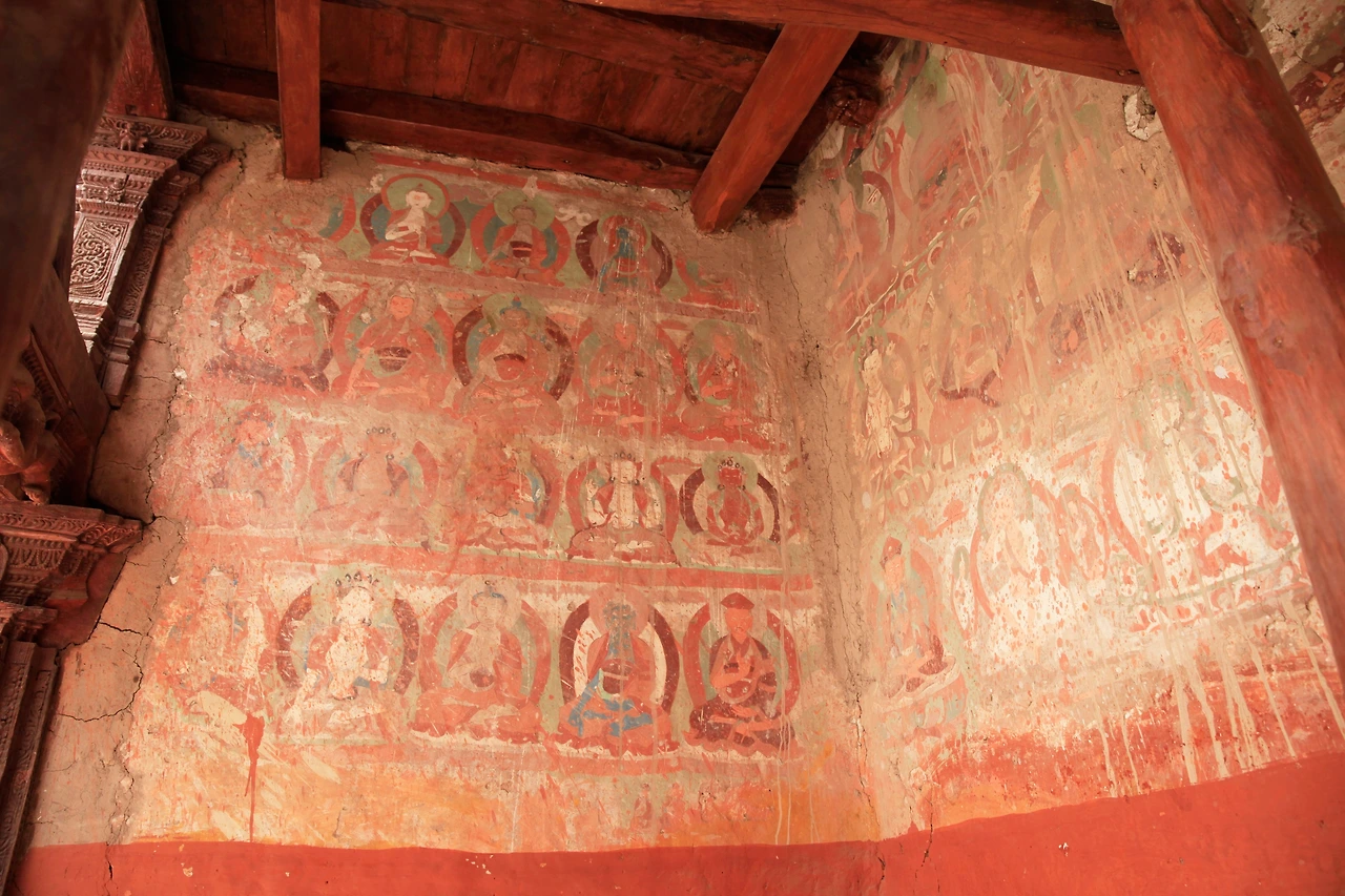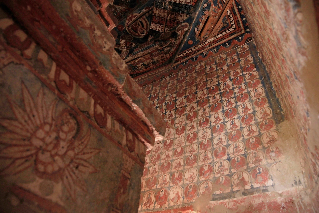 입장료를 내고 들어선 곰파의 내부에서는 햇빛도 닿지 않는 어둑한 곳에 벽화가 그려져 있었다. 그것은 아주 오래전부터 그곳에 있었다. 시간이 멈춘 듯했다. 나는 벽화가 품고 있는 긴 시간성에 완전히 압도당했다. 숨죽이며 둘러본 채 밖으로 나와 다른 벽화들을 홀리듯 카메라에 담았다. 엄청난 것을 봐버린 기분. 라싸에서 본 여러 벽화들이나 곰파들보다 더 깊은 불교의 시간성을 느끼게 한 알치곰파.. 그 묵직함에 숨죽이며 절로 경견함을 느꼈다. 불교의 역사는 내가 생각한 것 너머에 있구나