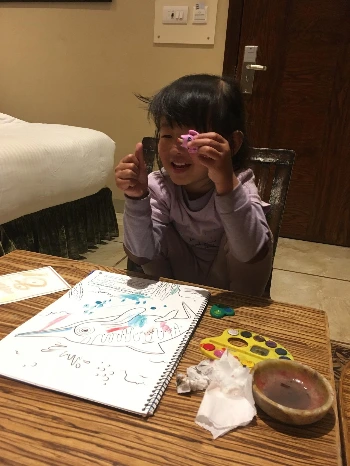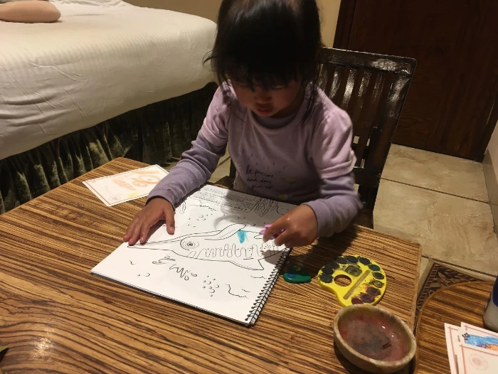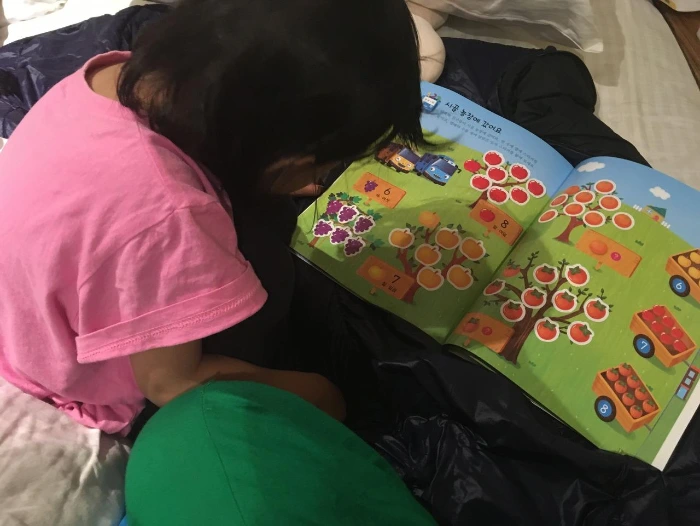 낮잠 들기 전에는 숙소에서 달이랑 타요 스티커 놀이를 한다. 아이랑 여행을 하는 데 있어서 이런 놀이북이 굉장히 도움이 되는데 숙소에서 함께 시간을 보내는데 최고다. 꽤 많이 준비해왔는데 몇 권 남지 않았다.