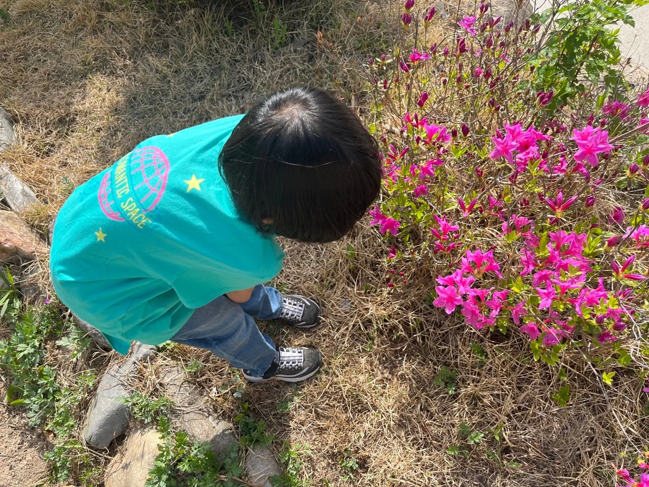 봄이 되면서 첫째 아이는 학교에 가기 전에 정원의 풀들과 꽃들 새싹을 관찰하는 시간을 즐기게 되었다. 자연스럽게 우리에게 아침시간이 생겼다. 잠시 마당에서 새싹들과 나뭇잎 꽃들을 둘러보고 새소리를 들으며 진짜 오롯이 아침을 느끼는 아침시간이다. 둘째도 마당이 좋은지 수시로 마당에 나가자고 손을 잡아끈다.