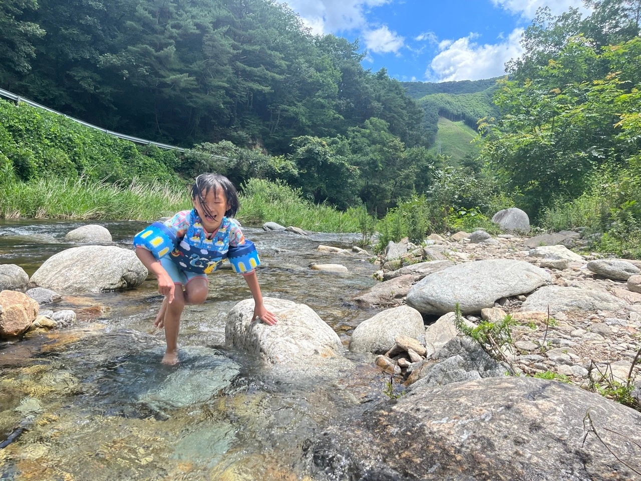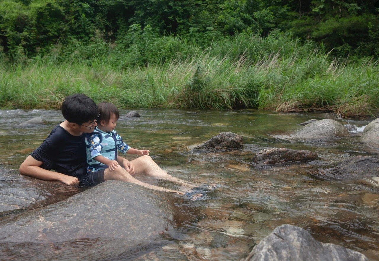 집 바로 앞에 흐르는 청정계곡에는 많은 사람들이 찾아온다. 아이는 창에 붙어서 오늘 해가 떴는지를 바라보고 해가 드러나면 어김없이 계곡에 가자는 말을 한다. 계속 졸라대다가 그래 계곡에 가자! 하면 어느새 수영복으로 재빨리 갈아입고 수영모와 구명조끼 물안경까지 입고서 신이 나 있다. 나는 물을 별로 좋아하지 않고 옷이 축축해지는 느낌도 싫어하지만 냉장고에서 먹을 것을 대충 척척 꺼내 담고 집 앞에서 계곡에 발을 담그고 간식을 까먹는 시간을 나쁘게 여기지 않게 되었다. 계곡이 가까우니 틈나는 대로 계곡에 갔다. 물의 시원하고 깨끗한 에너지가 느껴지고 발을 담그면 그렇게 시원할 수가 없다. 물놀이가 끝나면 수건을 두르고 차에 타서 금방 집으로 와서 바로 씻을 수 있으니 번거로움도 덜하다. 올여름은 계곡을 정말 실컷 즐겼다.