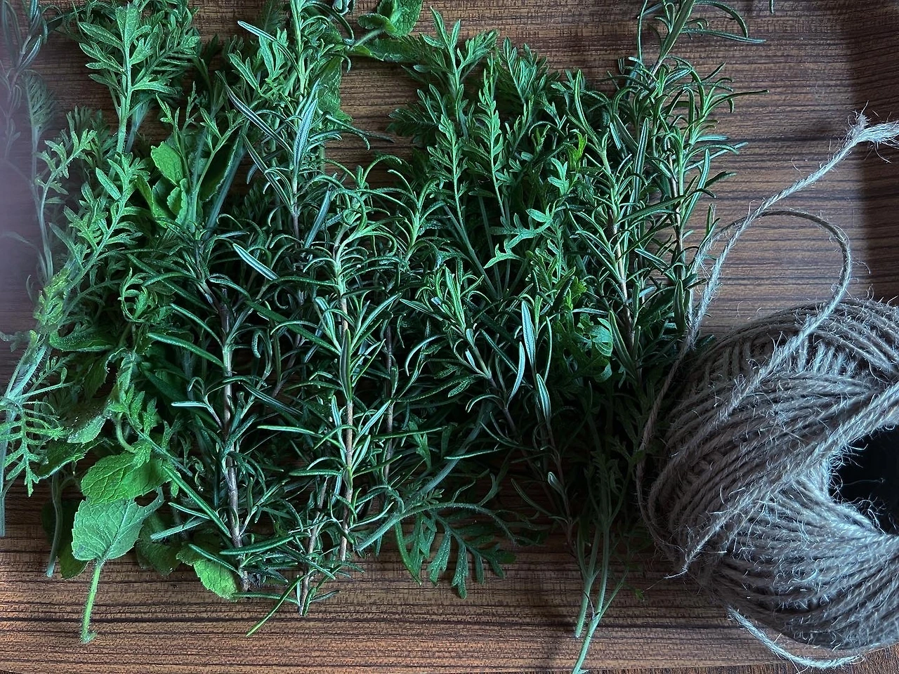 스머지 스틱은 예전에 인디언들이 공기나 기운을 정화하기 위해 허브를 말려 태운 것에서 비롯된 것이다. 100프로 천연 방향제인 셈이다. 마음속에 내내 스머지 스틱을 만들어 보고 싶은 마음을 가지고 있다가 어느 날 실행을 해보기로 했다. 마당의 허브들을 툭툭 잘라서 쟁반에 담았다. 골고루 펼친 뒤에 조금씩 섞어서 준비해 둔 마끈으로 꽁꽁 묶었다. 실도 같이 태우기 때문에 마나 면소재의 실을 이용해야 한다고 한다. 허브를 만지는 과정만으로도 치유의 느낌이 감돌았다. 향기는 말할 것도 없다. 시골살이를 하며 알게 된 것인데 허브를 비롯한 식물들에는 각각 인간에 대한 치유의 성분을 가지고 있다고 한다. 허브를 바싹 2주 동안 그늘에 말린 뒤 태워보았다. 특유의 식물향이 났다.