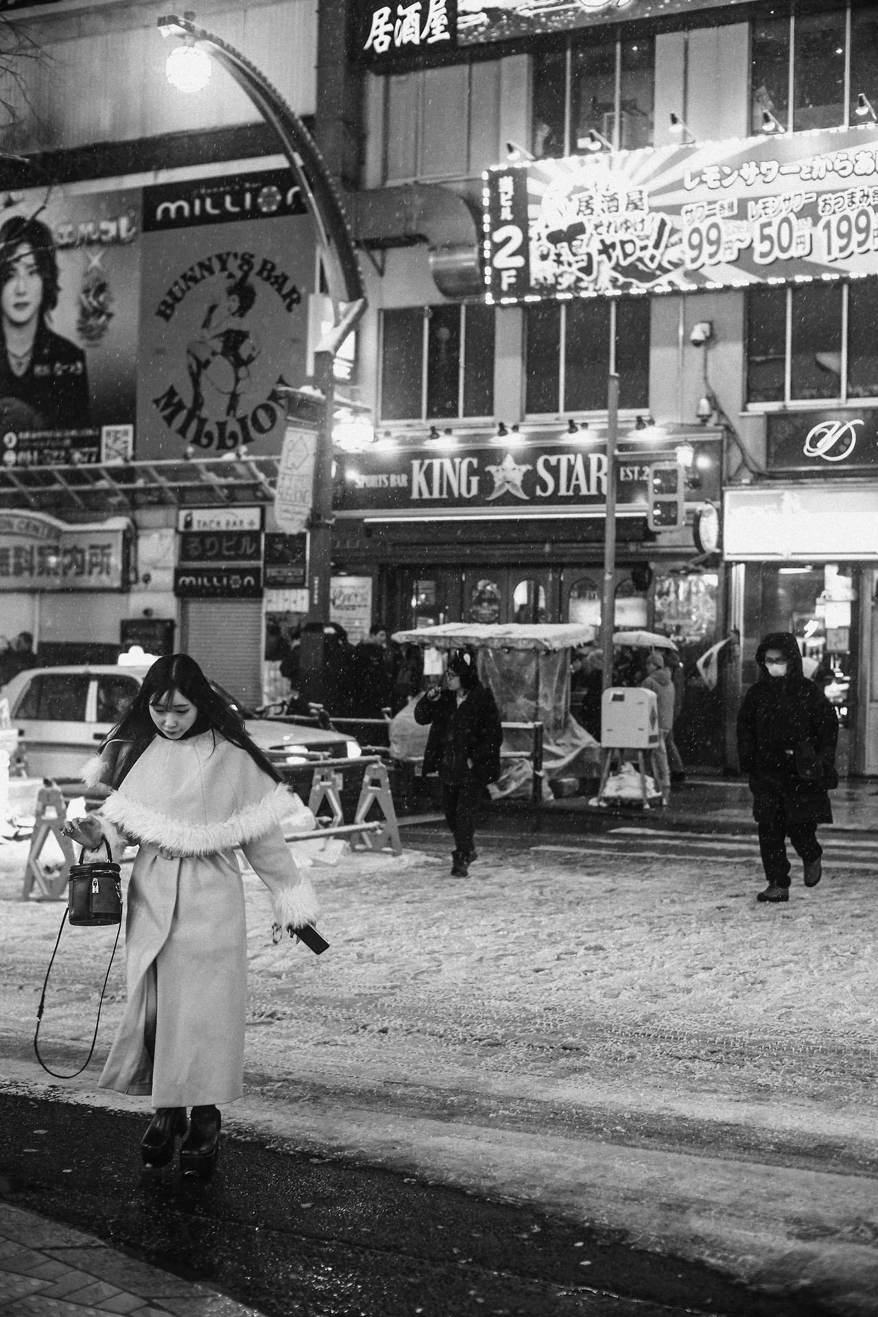 사람들로 가득했고, 눈은 실시간으로 도시를 덮고 있었다.