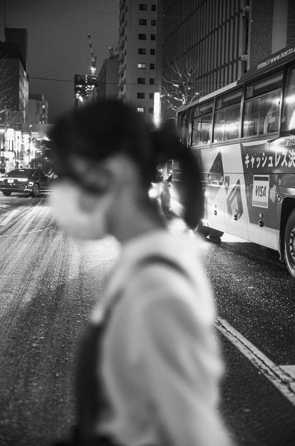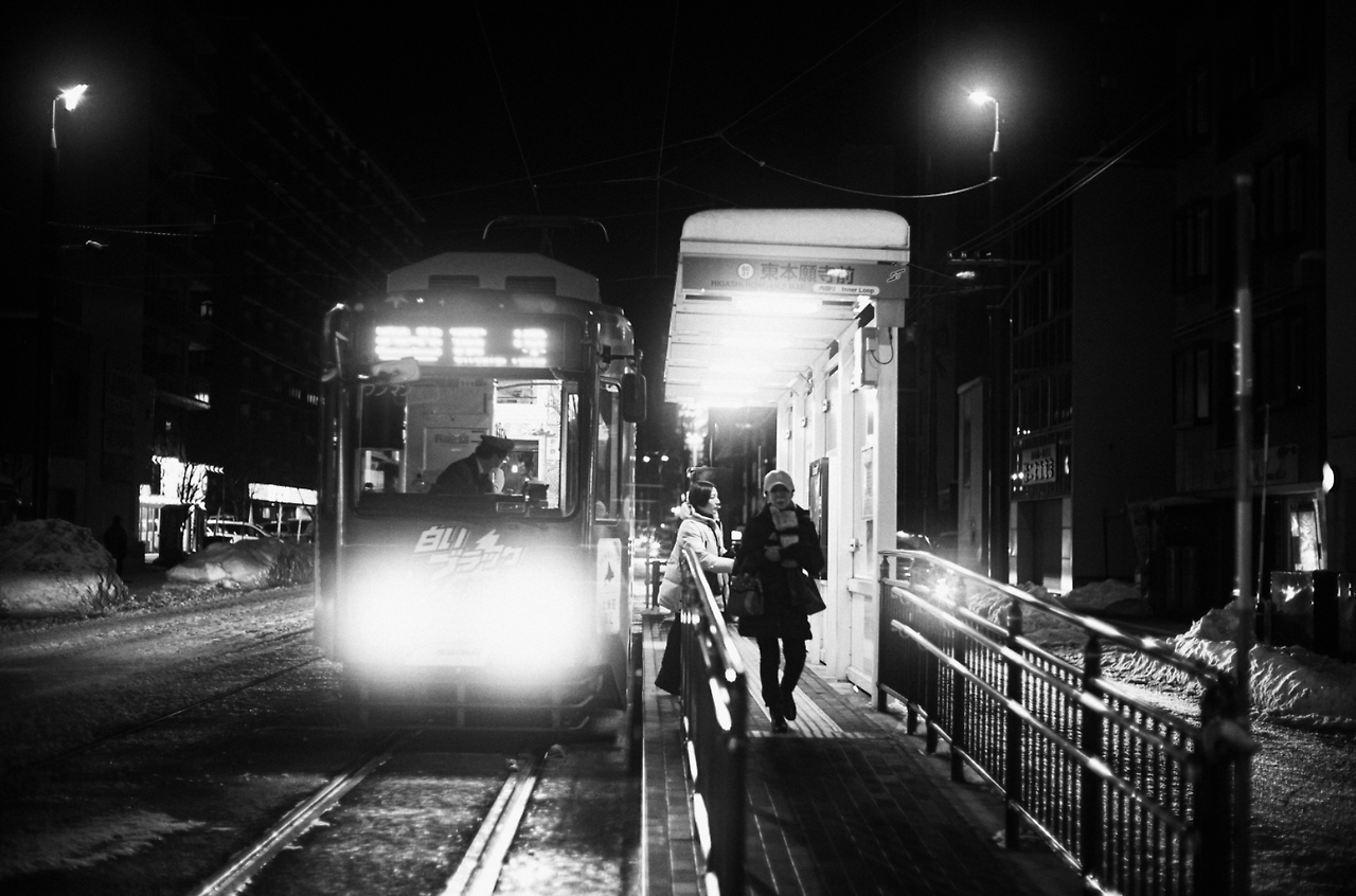 어두운 창밖을 바라보며 삿포로 시내로 들어갔다.