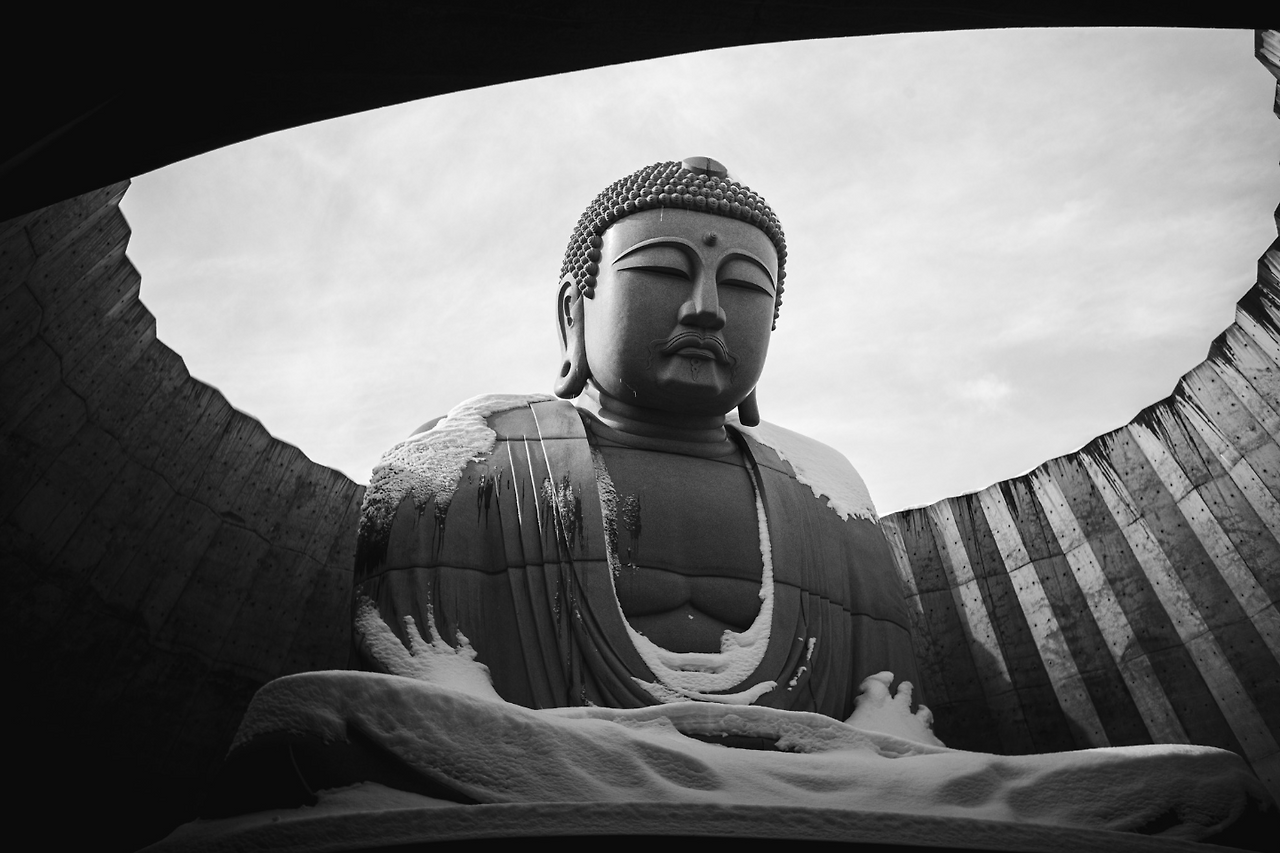 거대한 불상이 있었다. 머리 위로 쏟아지는 빛과 눈, 그리고 압도적인 고요.