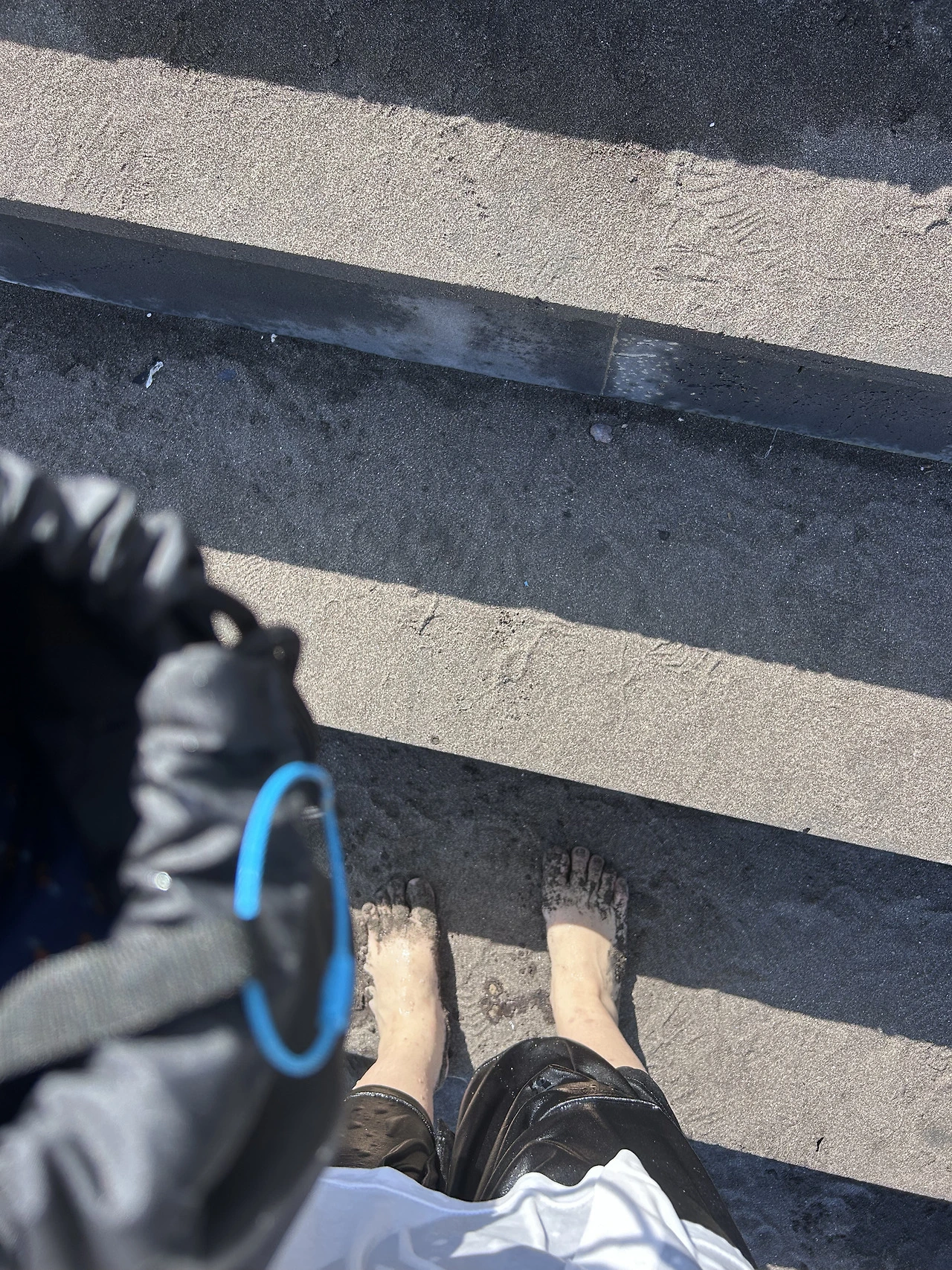 바다 속을 걸어다니거나 총총 뛰어다니며 발가락을 꼼지락, 모래 바닥 사이에 넣어봤어요. 조금만 파고 들어가면 솨아아 하고 시원해지는 바닷속 모래 바닥. 그 싸한 기운이 신기하게 발과 다리로 퍼져 올라왔는데, 그 감각이 왜인지 따스한 번짐처럼 느껴졌어요. 바다랑 입맞춤을 했구나, 싶었습니다.