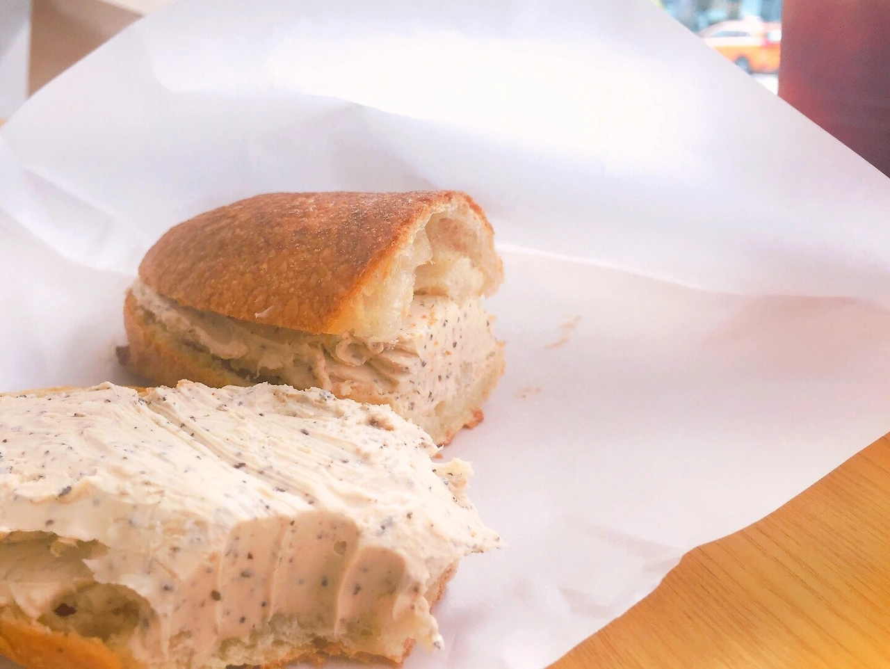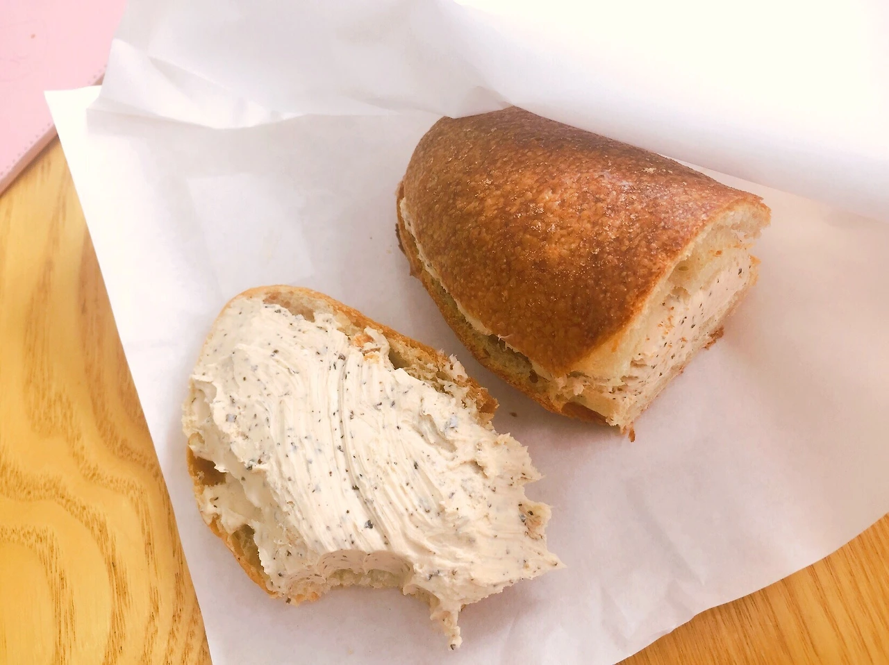 그렇게 찾아가 고른 빵은 얼그레이 크림치즈 바게트이다. 사실 생크림도 넣게 되면 원래 빵의 명칭은 ‘얼그레이 생크치’이다. 생크치 종류는 굉장히 많다. 무화과 생크치, 쑥 생크치, 흑임자, 한라봉까지... 더 많다. 힘이 없는 날엔 달달한 것이 당겼다. 단순히 빵 맛뿐 아니라, 빵을 사 먹으러 빵집을 찾아가는 것부터 빵을 먹는 순간까지 일련의 과정들은 내게 행복한 시간을 만들어 준다.
