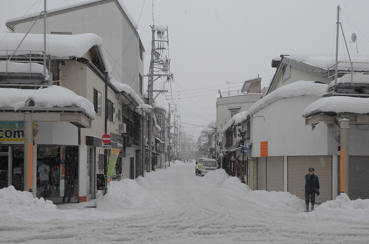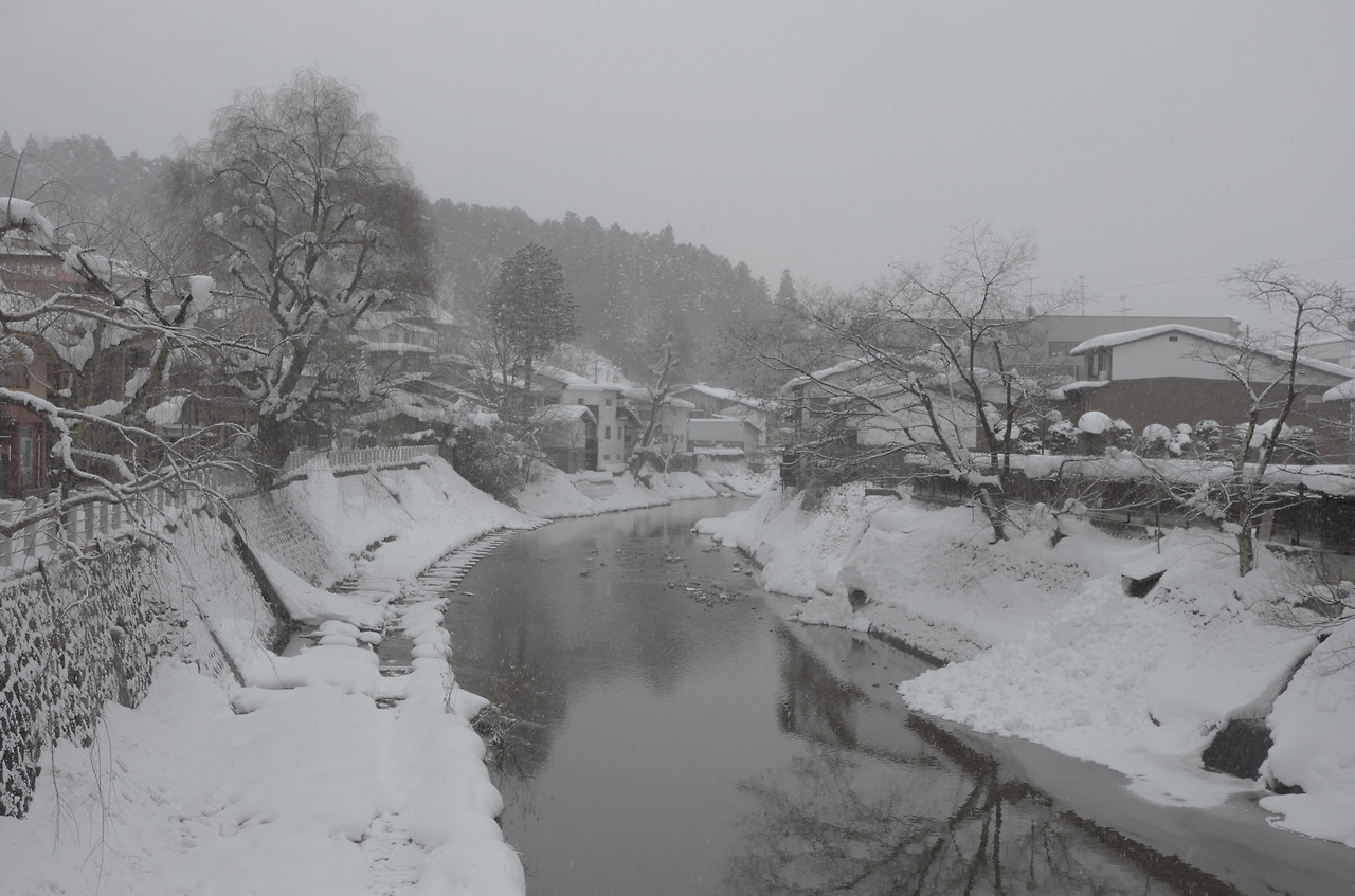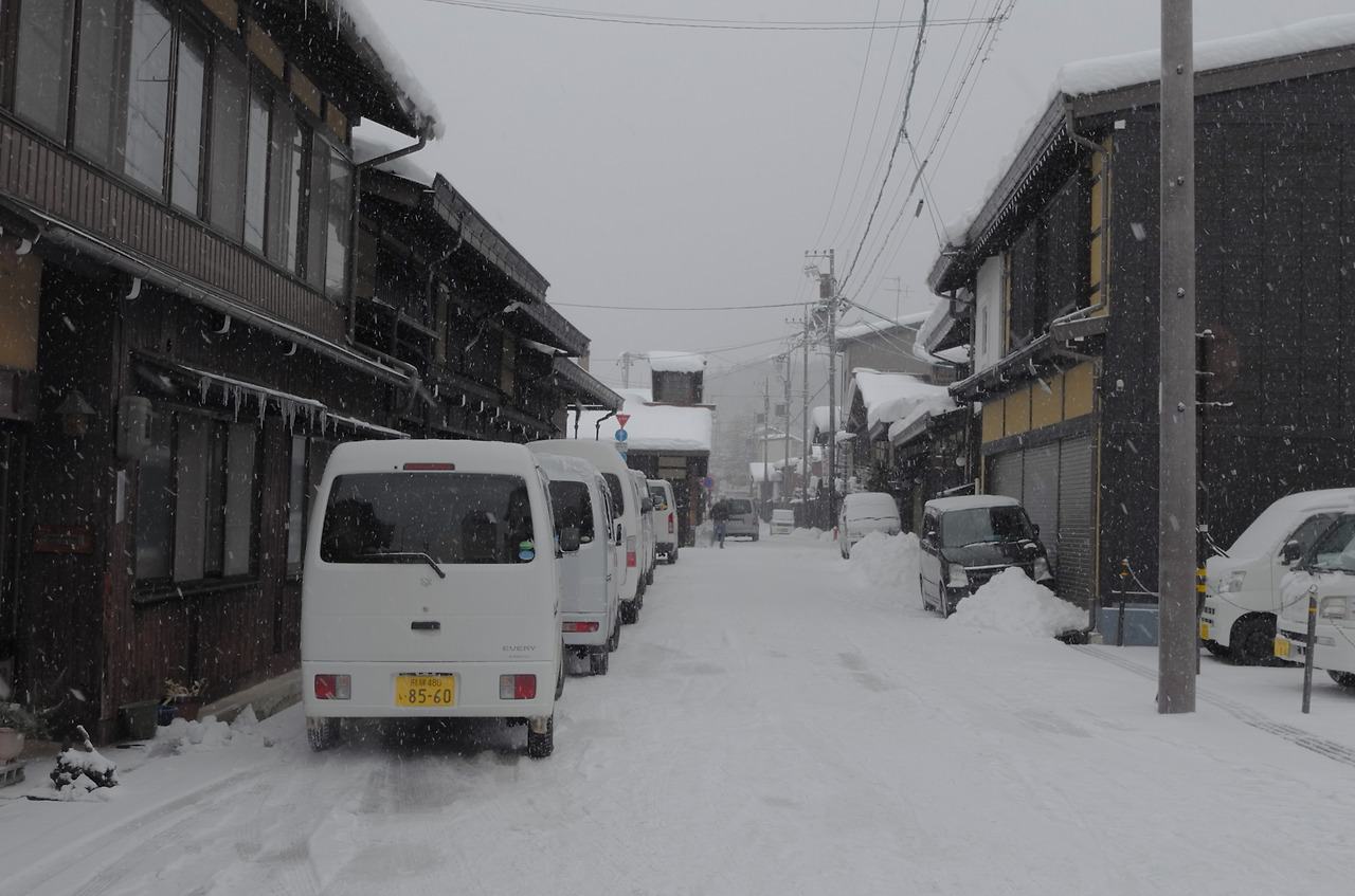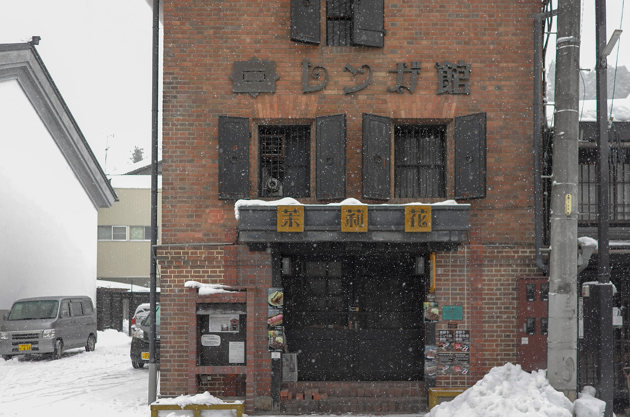 숙소 체크아웃을 하고, 역에 들러 짐을 코인로커에 넣고, 12시쯤 시라카와고로 떠나는 버스를 예약하고, 아침거리를 찾을 겸 걷다가 마침 적당한 빵집을 발견하고 효모 빵과 애플 파이, 우유를 샀다. 가게 안에서 작은 선반같은 곳에 기대어 먹으며 가게 앞을 내다봤다. 집마다 무거운 눈이불을 머리에 이고 있었다. 어두운 밤에는 실감하지 못했던 강설량이 와닿았다.