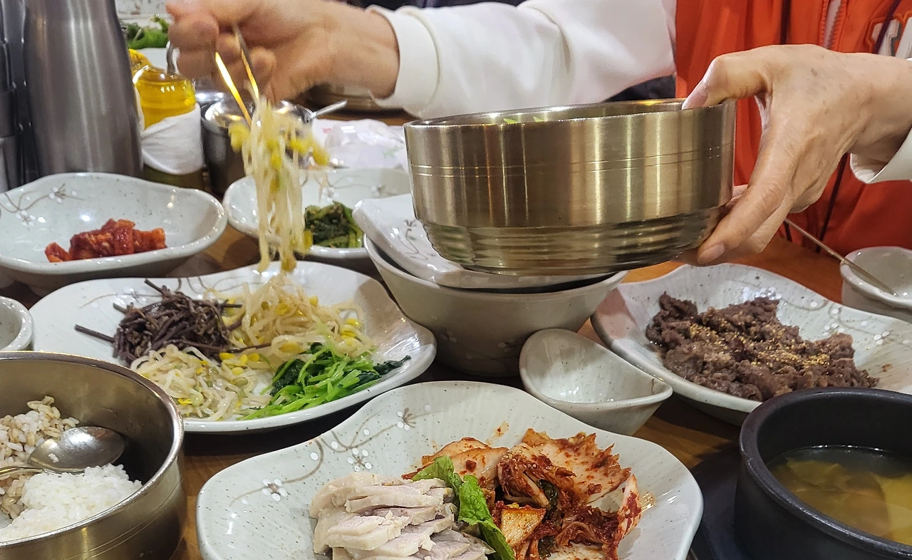 한식 밥상이다. 여자들은 고기보다 나물 같은