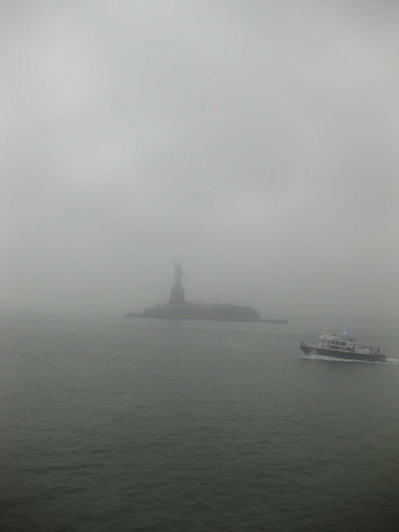 운무 속에 갑판에 나가 카메라를 들고 자유의 여신상을 몇 장 찍었지만 여행객인 내가 이상해 보이는