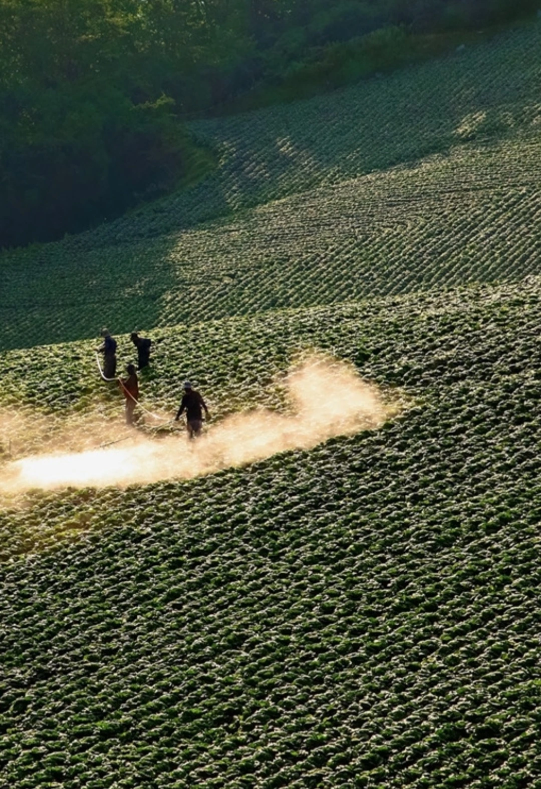 이슬을 듬뿍 먹은 알배기 배추들이 값 비싼 몸매를 수천 이랑으로 보여주는데 부지런한 일꾼들이
