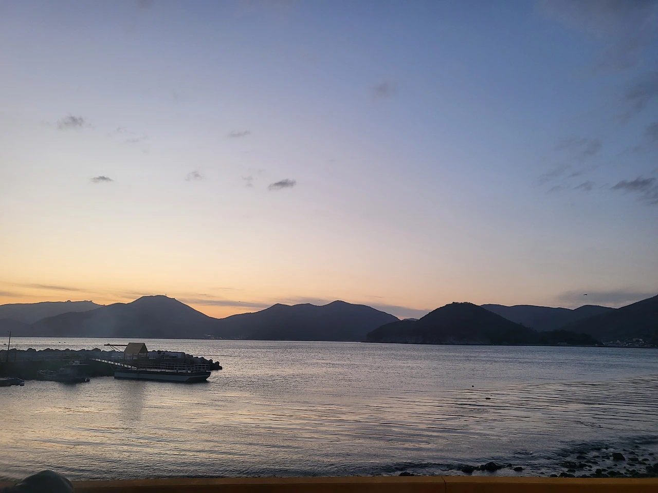 바다인 지 호수인 지 모를 듯한(파도 소리조차 없던) 물가의 침실에서 하룻밤을 새고 아침녘