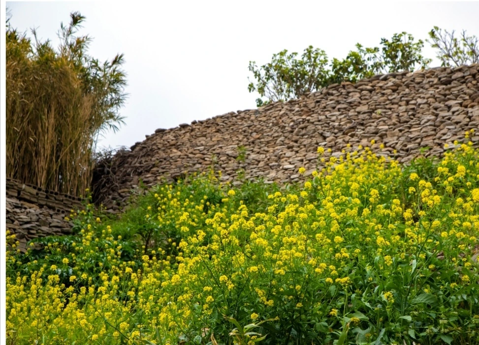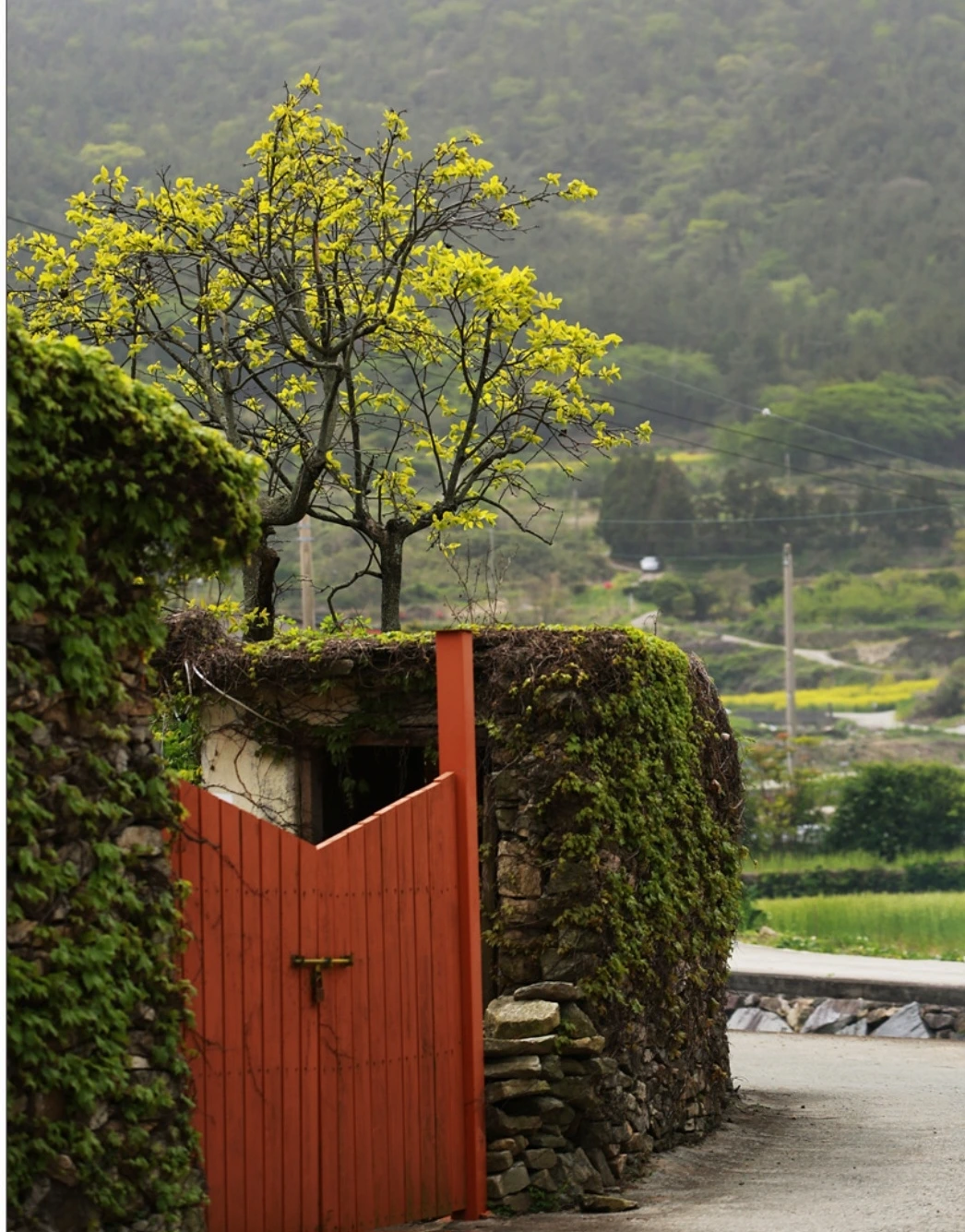 돌담을 높이 쌓아 지은 작은 집들이 이끼 낀 좁은 골목을 따라 언덕을 조성하고 모두가 마당 가득 유채를