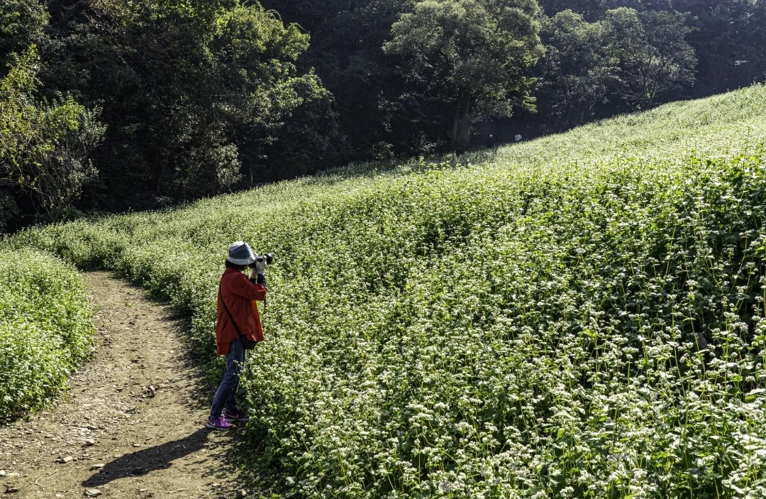 원래 메밀을 얻기 위한 밭이 아니라 꿀벌의 먹이가 될 밀원을 얻으려는 양봉 사유지로 봄에는 유채꽃을, 가을이면