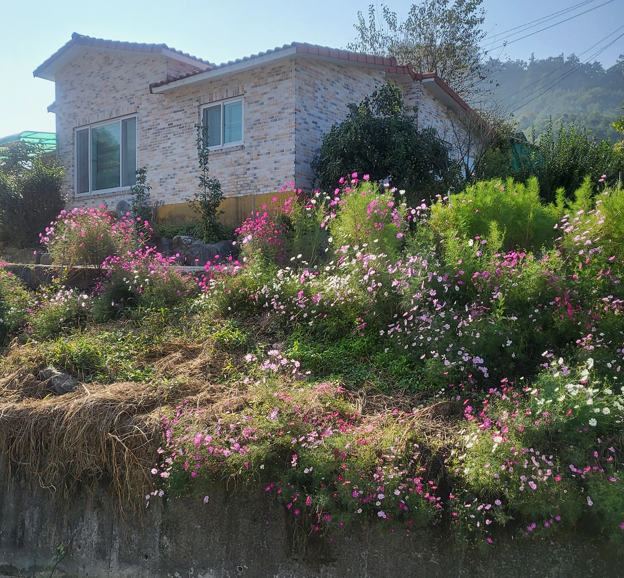 바빴다. 한창인 코스모스 무리나 탐스럽게 영근 사과나무 울타리를 한 집들이며 곳곳에 꿀벌들이 잉잉대는 게
