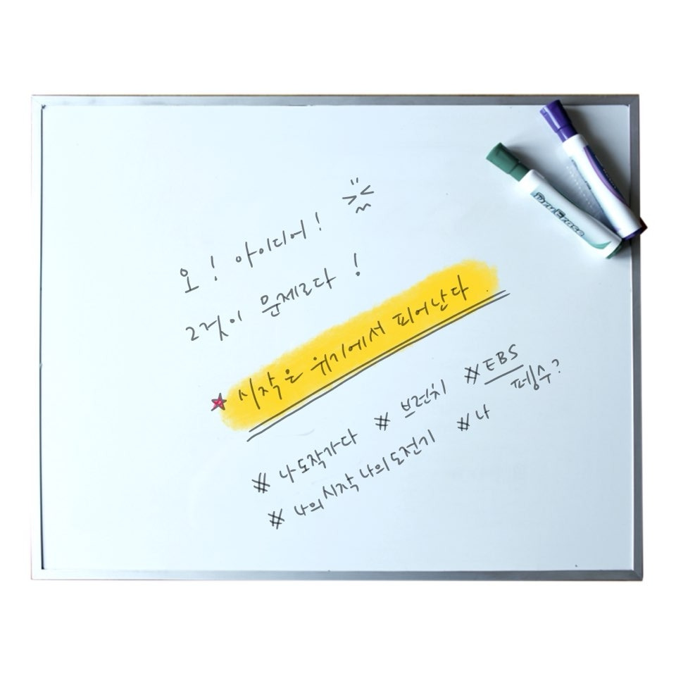 꾸역꾸역 버티던 어느 날 문구점에 터덜터덜 걸어가서 작은 화이트보드를 하나 샀다. 그걸 침대 맡에 두고 잤다. 잠결에 떠오른 기가 막히는(?) 아이디어를 자고 일어나서 까맣게 잊어버렸다는 사실을 알고 적어두지 않은 것을 두고두고 후회했기 때문이었다. 바보같이 왜 적질 않았니? 몽유병에 걸려서라도 적었어야지!!
