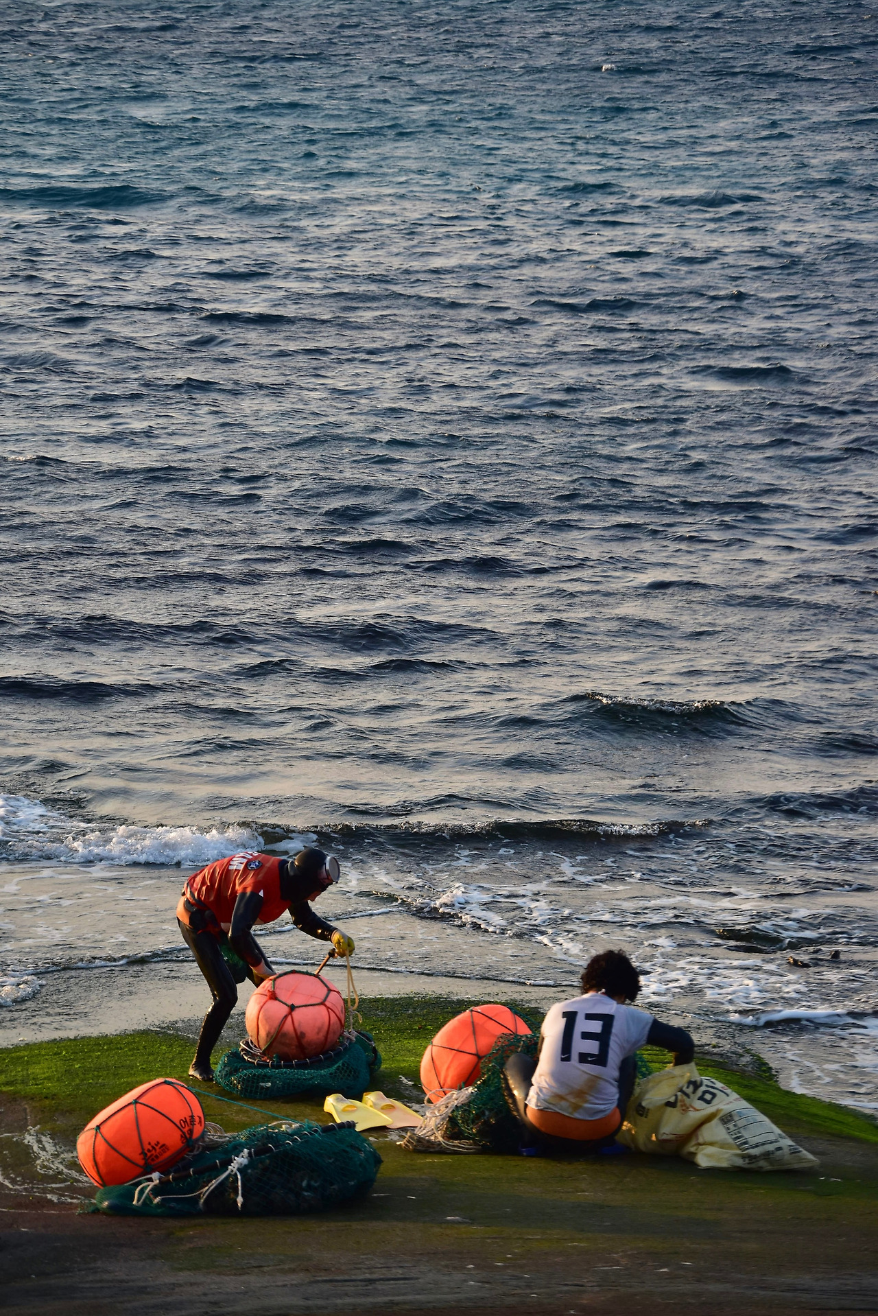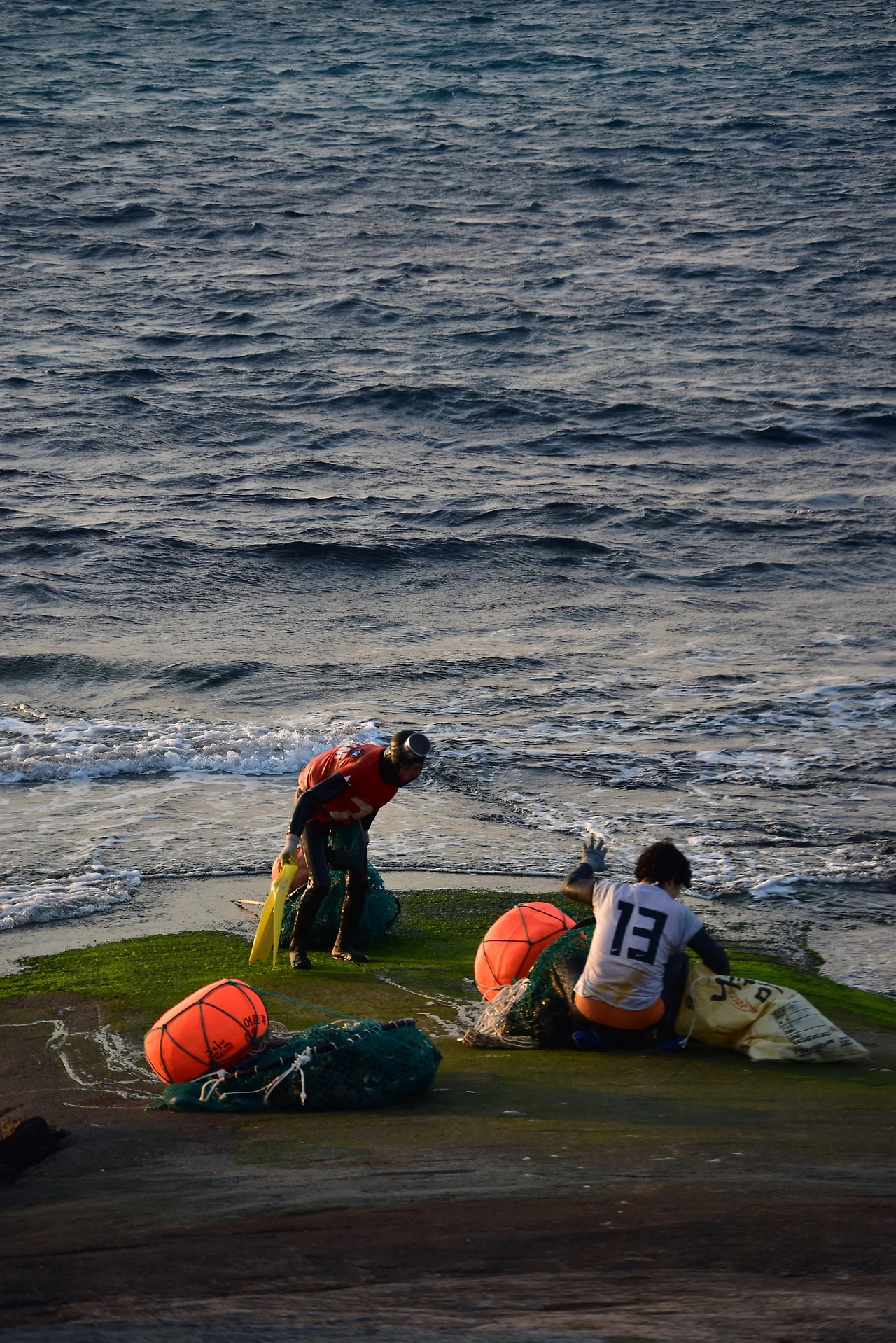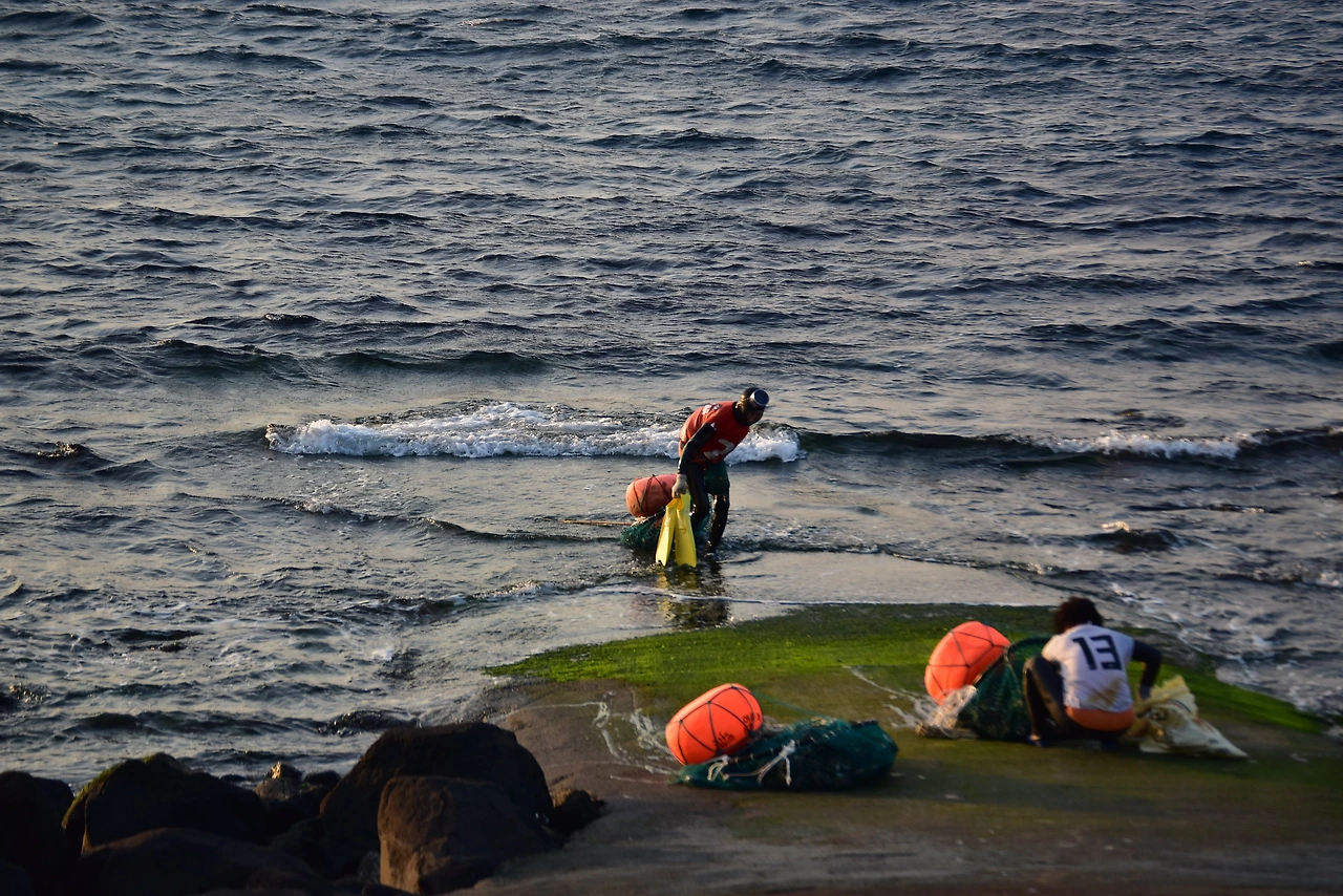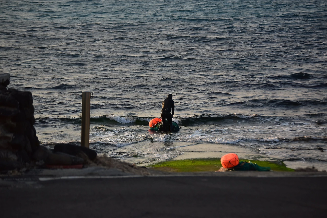 우도의 바람은 육지나 제주시보다도 좀 더 강한 편인데 파도가 잔잔한 날이 여름날에도 그리 많지는 않은 듯하다. 그런 파도 속으로 뛰어들어 세찬 바다의 소리를 담아 오는 해녀 분들.