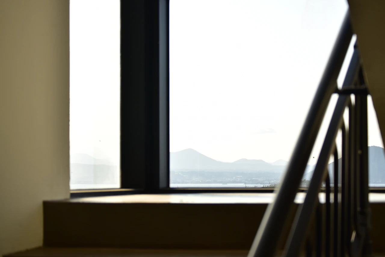 내가 좋아하는 계단에서 보이는 창 밖 풍경,