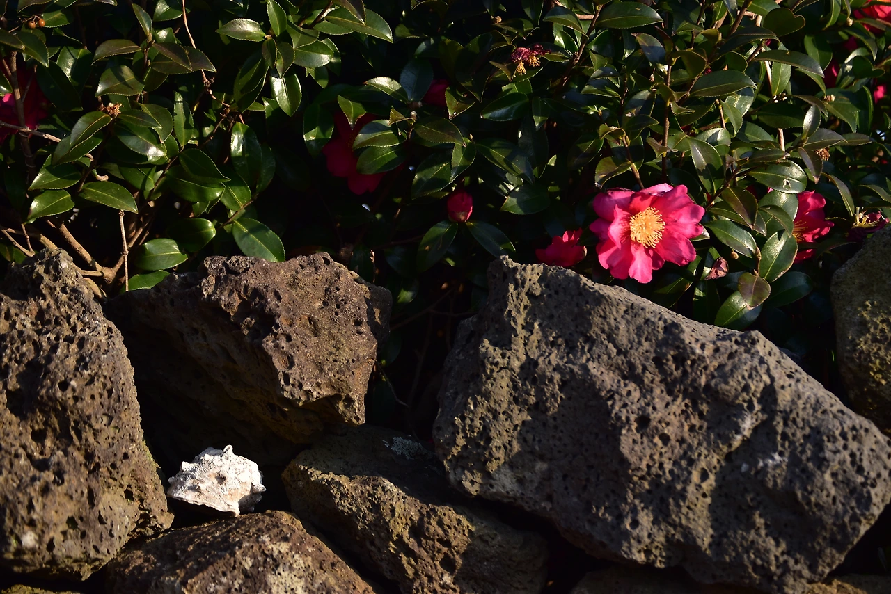 제주에는 동백이 흐드러지게 피었다던데 우도엔 바람이 세차서 그런지 동백을 보는 것이 쉽지 않다. 그래도 붉은색의 화사함은 드물게 있다한들 더욱이 존재감을 드러내어 발걸음을 멈추어 카메라를 들게 한다.