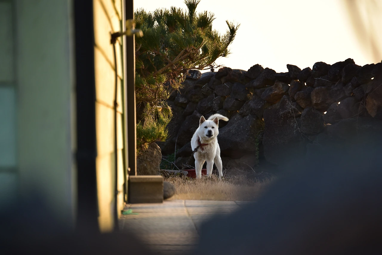 제 집 지키겠다고 짖어대는 백구.