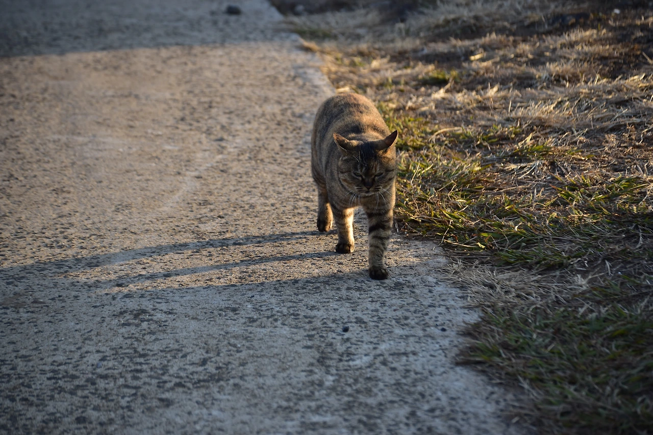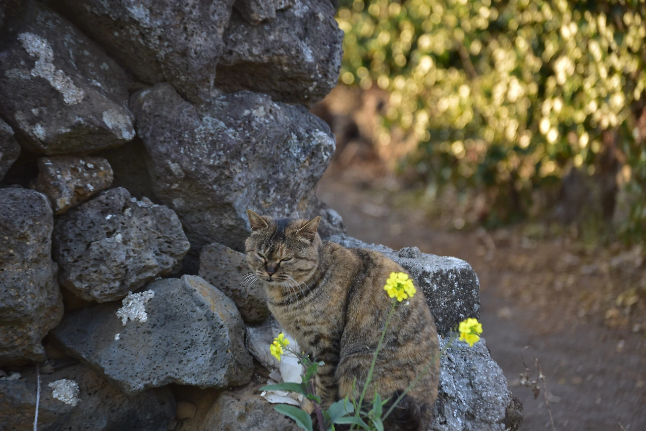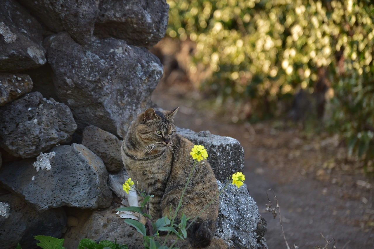 알아서 포토존으로 올라가 도도하게 포즈를 취해주고는 같이 산책하듯 따라오는 고양이.