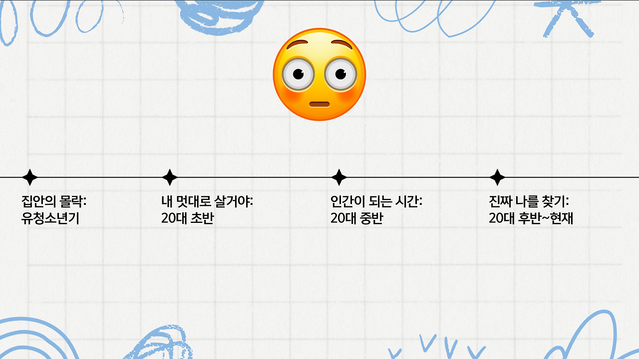 1부에서는 제 개인사와 함께 “진짜 나”를 알아가기 위한 여러 방법들을 소개 했습니다. 주변 사람들은 다 아는 사실이지만, 거의 20대 전체를 꽤 시끄럽고 폭풍같이 살아왔답니다.