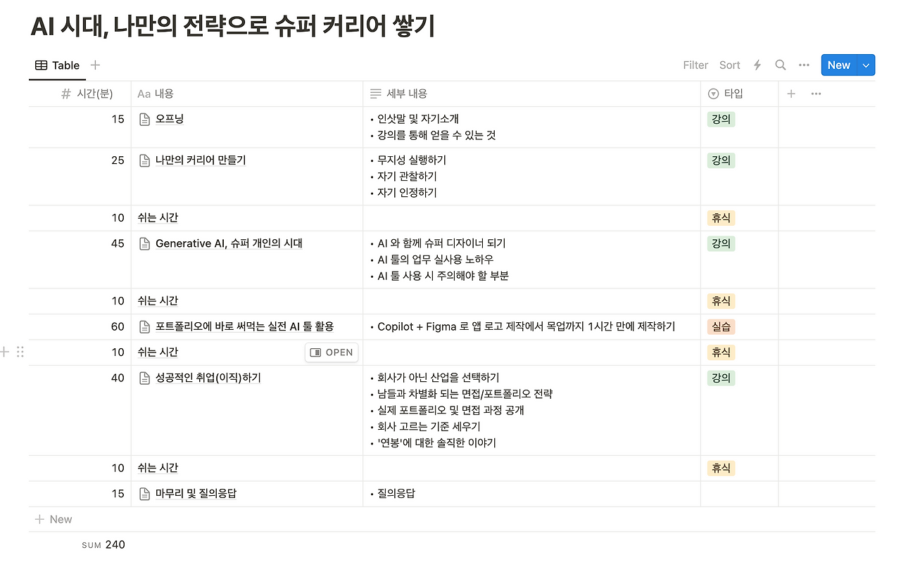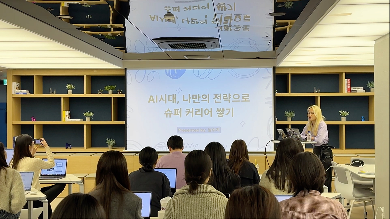 강의의 주제는 "AI 시대, 나만의 전략으로 슈퍼 커리어 쌓기"였습니다. 그동안 커리어를 쌓아오면서 배운 것들을 최대한 전달하고 싶다는 생각에 4시간이 모자라도록 내용을 꾹꾹 눌러 담았답니다.