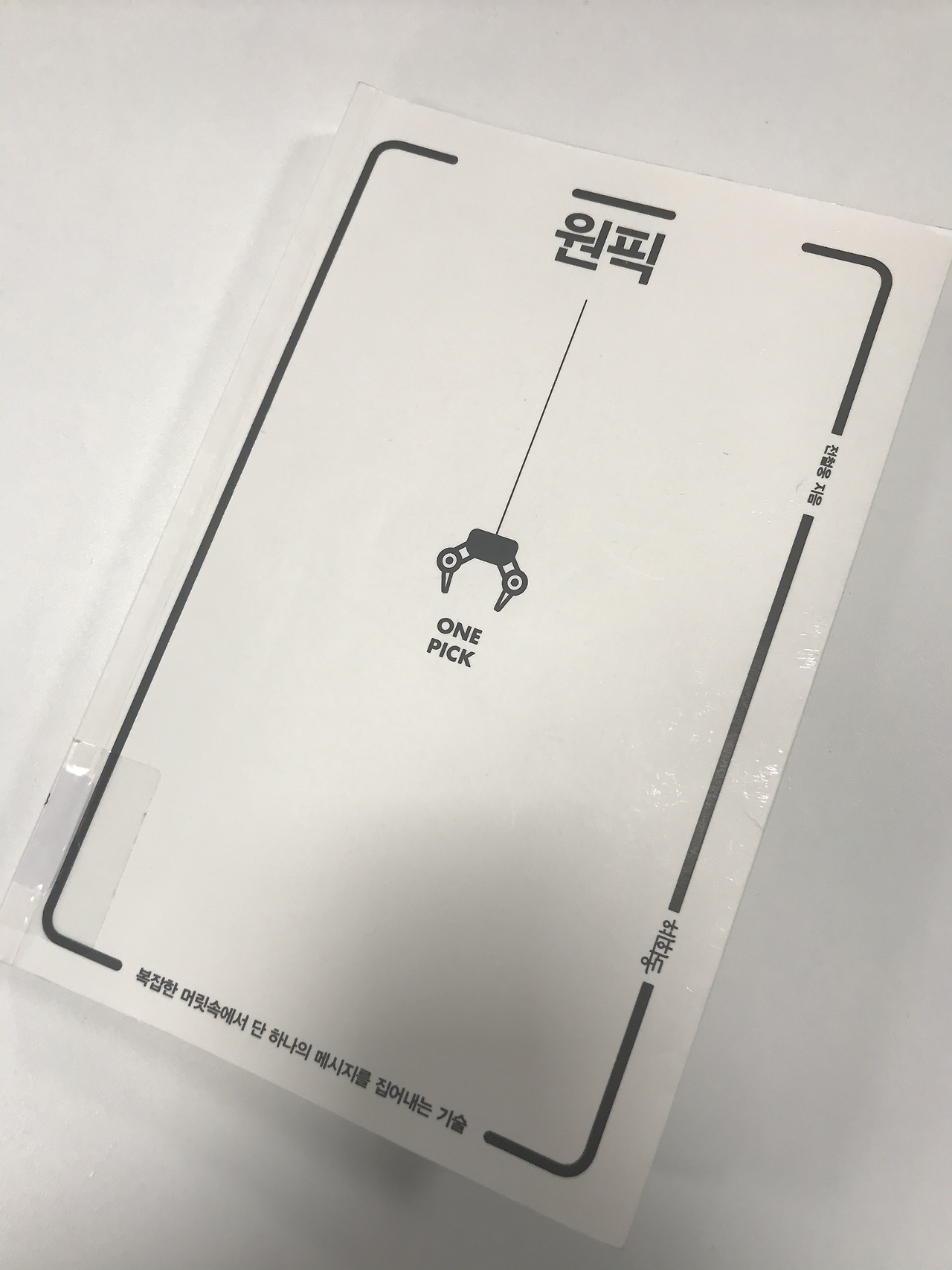 직장 생활을 하며 '프레젠테이션'이란 단어에 즐거운 기억이 있는 사람은 단언컨대 없을 것이다. 나 역시 학창 시절 조별과제를 할 때부터 어영부영 눈치만 보다가 조장보단 차라리 발표자를 택하곤 했다. (누군가에게 떠넘길 뻔뻔함은 없었지만, 업무 분담을 두고 묘한 눈치싸움을 버틸 끈기도 없었다.) 입사 후 팀 프로젝트를 할 때도 여러 차례 발표를 도맡았다. 홍보 업무를 하고 있다는 이유 만으로. 홍보실 소속이란 자기소개에는 응당 떨지 않고 센스 있게 스피치를 할 거란 기대치가 높았다. 조금씩 나아지곤 있지만 하지만 나는 여전히 발표가 두렵다. 성공적인 프레젠테이션이 뭔지도 모르겠다. 그런 나의 복잡한 머릿속에서 단 하나의 메시지를 집어내는 기술이 담긴 <원픽>을 집어 들고 많은 꿀팁을 얻었다.