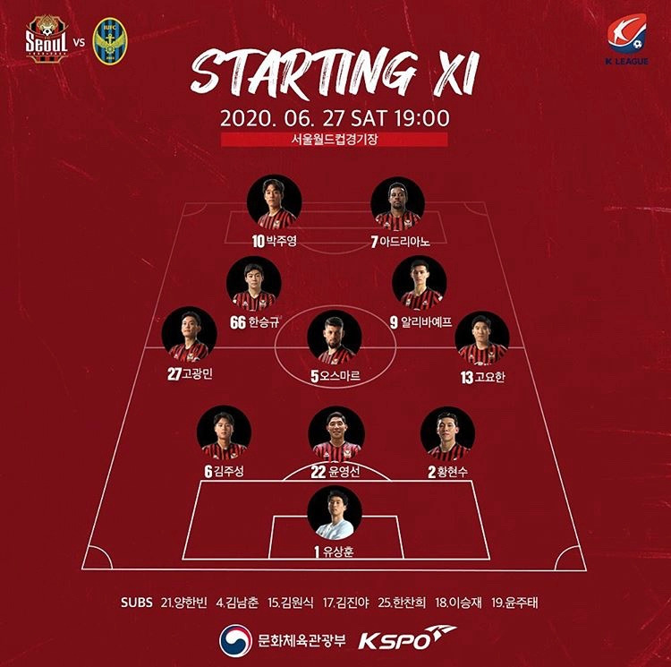 부산은 8라운드에서 드디어 대망의 첫 승을 거뒀다. 무승부를 4번이나 기록하며 한 끗 차이로 계속 미끄러지다가, 지난 인천전 김문환의 원더골로 극적인 1승을 거뒀다. 매경기 꾸준함을 보여주는 강철 체력의 김문환이 역시 선발 출전했고, 성남의 김영광에 맞서 베테랑 골키퍼 김호준이 골문을 지켰다. 첫 승의 기운을 연승으로 이어가려는 조덕제 감독의 상대는 성남 김남일 감독이었다. 리그 초반 돌풍을 일으킨 것과 대비되는 성남의 6월은 최악이었다. 대구, 울산, 수원, 상주에 나란히 4연패를 당했고, PK 1골을 제외하면 득점이 0이었다. 급하게 FC도쿄에서 임대로 국가대표 나상호를 영입했지만, 곧바로 선발 투입하기에는 위험 부담이 컸다. 유인수, 양동현, 최병찬이 스리톱을 구축하고, 박태준, 김동현 등 어린 미드필더들이 중원 싸움에 나섰다.