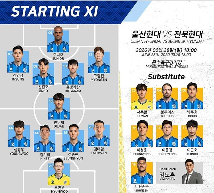 리그 1,2위 팀의 맞대결은 승점 6점짜리 경기다. 지난해 다득점에서 1골 뒤지며 아쉽게 우승, 준우승이 갈렸던 것을 기억하면 더욱더 중요한 승부였다. 지난해 1승 2무 1패로 팽팽했던 전북과 울산은 올해도 승점 1점차 1,2위 상태로 미리 보는 결승전을 펼쳤다. 기세는 오히려 2위 울산이 더 강력했다. 6월 내내 4연승 10골 0실점으로 완벽한 기세의 울산은 이청용도 부상에서 복귀했기 때문이다. 반면 전북은 4경기 전승이지만 아슬아슬한 1골 차 꾸역승이 많아 위험요소가 많았다. 하지만 주장 신진호가 경기 전 몸을 풀다가 어지러움으로 쓰러지며 김도훈 감독의 플랜은 조금씩 틀어졌다. 급하게 베테랑 공격수 이근호를 선발로 내세웠지만 8개월 만에 첫 선발 출전인 만큼 궁여지책이었다.