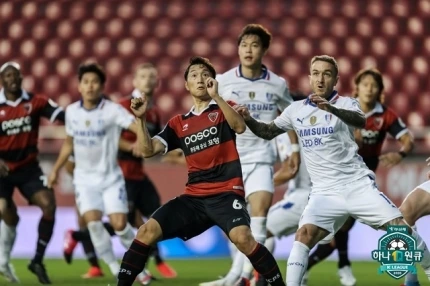 'KFA, 슈퍼매치 오심 인정' 대한축구협회는 지난 슈퍼매치 동점골의 빌미가 되었던 반칙은 결국 오심이었다고 인정했다. 양상민의 파울은 정당한 태클이었고, 5년 만의 슈퍼매치 승리가 날아간 수원은 어수선한 분위기에 포항을 만났다. 최근 1무 2패로 중하위권으로 떨어진 수원은 왕성한 활동량의 박상혁, 고승범을 선발로 택했다. 또한 타가트-김건희 투톱은 4경기 연속 선발로 나섰고, 최근 준수한 득점력과 시너지를 보여주고 있다. 반면 팔로세비치의 부상 공백에도 강원, 광주, 성남을 나란히 무실점 격파한 포항은 4연승에 도전했다. 중원의 활력을 불어넣는 심동운, 최근 골맛을 보며 컨디션이 올라온 팔라시오스가 선발 출전했다. 또한 전반기 가장 핫한 영 플레이어상 0순위 송민규가 측면 공격을 이끌었다.