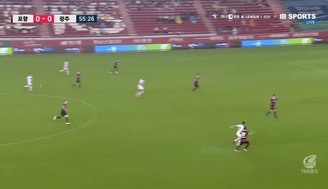 제대로 된 패스나 경합이 불가능해 보이는 그라운드에서 양 팀은 물러서지 않고 부딪쳤다. 펠리페가 전방에서 적극적으로 몸싸움을 펼쳤고, 포항 일류첸코 역시 넓은 범위를 커버하며 압박을 가했다. 특히 전반 초반 날카로운 펠리페의 헤더는 살짝 골대를 벗어났다. 하지만 전반 17분 만에 이광혁이 부상을 당해 심동운이 투입됐고, 김기동 감독은 계획에 없던 교체 카드를 사용했다. 자신감을 되찾은 광주는 한희훈, 박정수가 적극적으로 슈팅을 시도하며 골을 노렸다. 특히 전반 34분 펠리페의 단독 돌파 후 내준 공을 박정수가 다이렉트로 슈팅했지만 골대를 맞고 나오며 아쉬움을 남겼다. 다시 포항이 주도권을 되찾아 경기를 리드했지만, 광주는 단 한 번의 기회를 놓치지 않고 선제골을 뽑았다. 후반 16분 골대 앞에서 윌리안이 흐른 공을 따내려다 김광석과 충돌하며 PK를 얻었다. 미끄러운 그라운드의 영향으로 김광석이 주춤한 틈을 노린 것이다. 펠리페는 침착하게 강현무의 손끝이 닿지 않는 구석으로 페널티킥을 시도해 선제골을 기록했다.