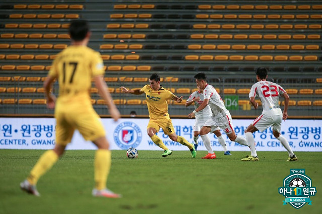 전반은 볼 점유율을 60% 이상 가져간 강원의 리드가 이어졌다. 하지만 빠른 역습을 준비하고 안정적으로 수비에 나선 부산에 막혀 위협적인 장면은 없었다. 전빈 6분 골대 앞 혼전 상황에서 조재완이 슈팅까지 시도했지만 골대를 벗어났고, 전반 17분 신세계의 과감한 중거리 슈팅은 골키퍼 품에 안겼다. 부산은 호물로의 터닝 슈팅으로 기회를 노렸지만, 전반적으로 침착하게 무실점에 집중한 모습이었다. 밀어붙이던 강원의 답답함을 뚫어준 건 활발한 움직임을 보여준 조재완이었다. 후반 11분 이현식이 올린 크로스가 그대로 수비수를 지나갔고, 반대쪽에서 쇄도하던 조재완이 가볍게 논스톱 슈팅으로 골을 터뜨렸다. 3분 뒤 부산은 호물로가 날카로운 중거리 슈팅을 시도했지만 크로스바를 맞고 나오며 동점 기회를 놓쳤다.